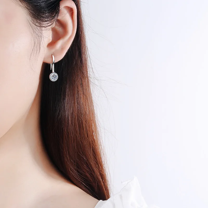 Inbeaut пройти Diamond тесты 925 Серебряные Круглые отличный крой Тотал 1 компьютерная томография D Цвет Муассанит свадебные серьги в виде капель с классические ювелирные изделия