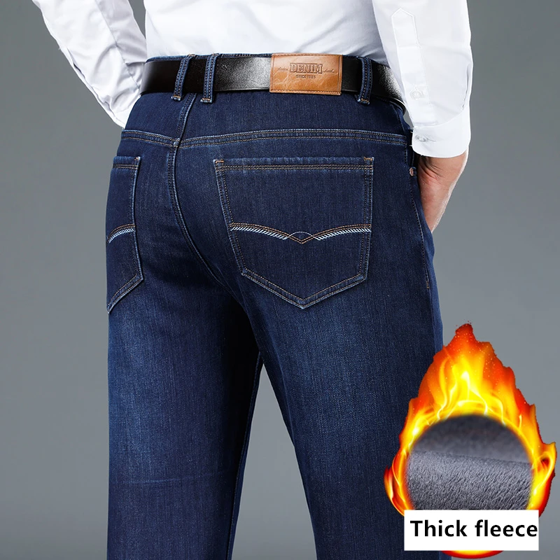 SHAN BAO роскошные высококачественные зимние теплые джинсы классические повседневные мужские прямые джинсы с карманами и вышивкой