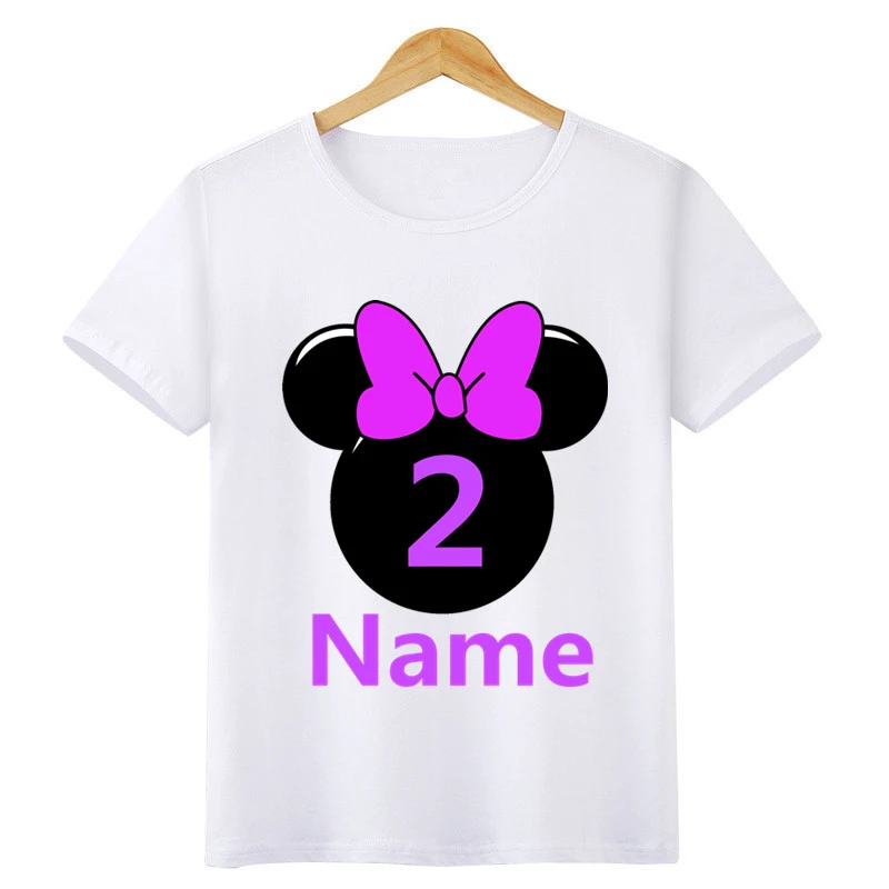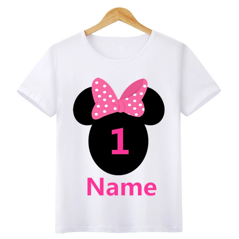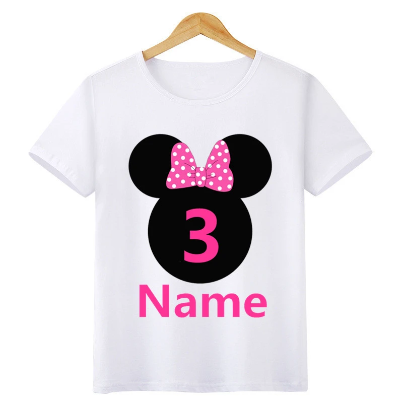 Футболка для мальчиков и девочек на день рождения с принтом с цифрами и бантиками детские короткие топы, Детская Милая футболка с вашим именем и номером ooo3055