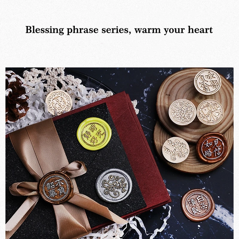 DIY восковая печать, печать, цельная деревянная ручка, Ретро металлическая печать, день рождения, свадьба, украшения для приглашений logo
