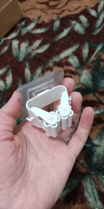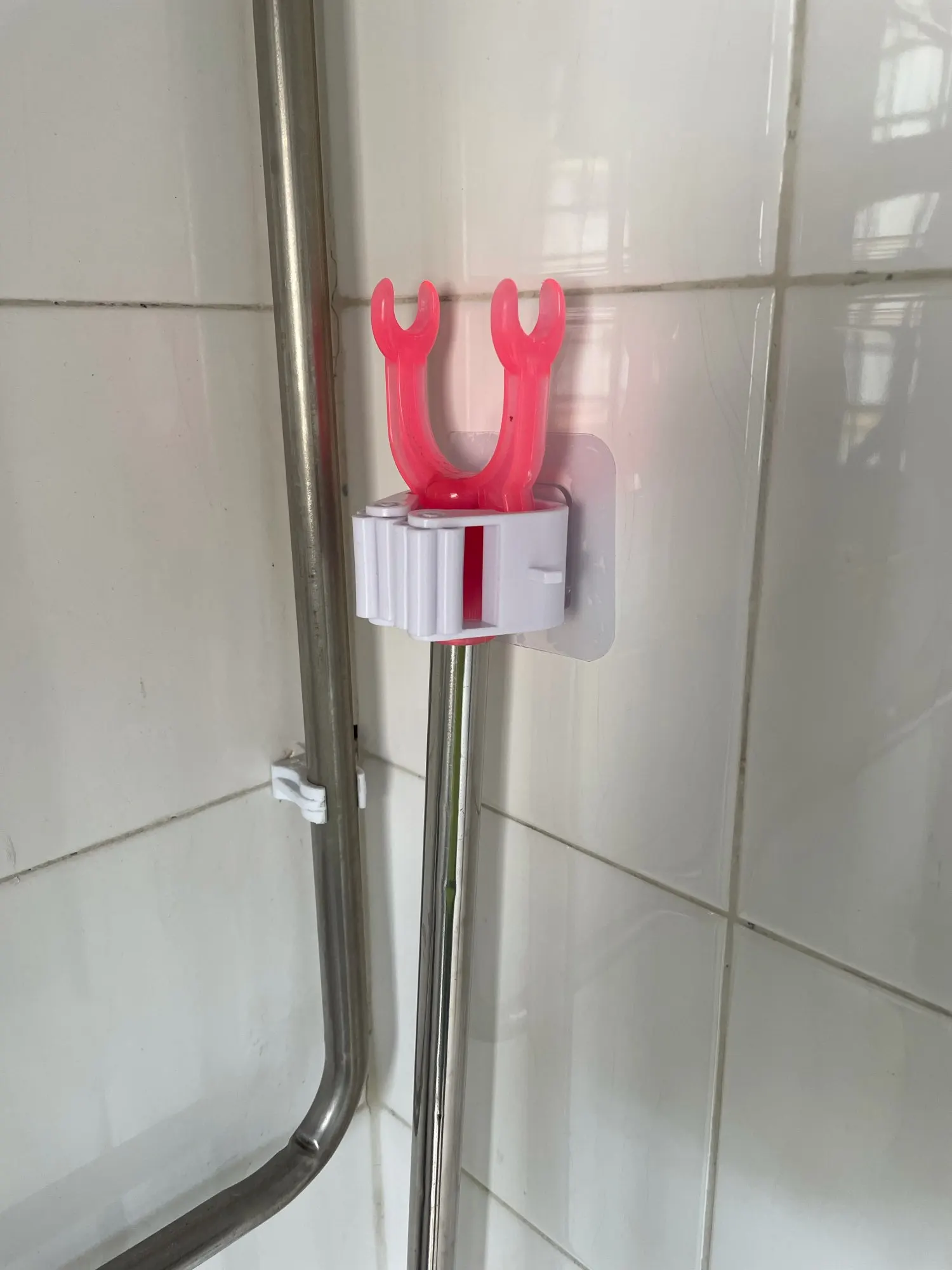 Хороший держатель, на стене держится крепко, также крепко держит ручку швабры, ничего не падает. Уже покупали такого типа держатели - простые, но эффективные. Доставка только долгая и трек не отслеживался по России.