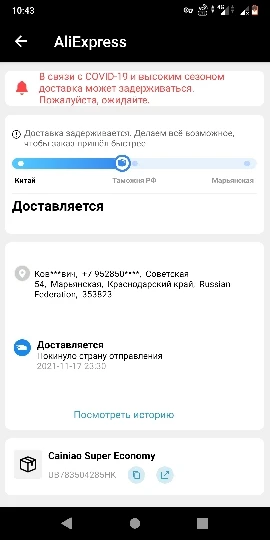 Страна: RU Color: White Доставка: Cainiao Super Economy 20.10.2021