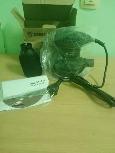 Пришло быстро. Проверил работает отлично. Собрано качественно. Провод длинный. В комплекте инструкция, мешок для сбора пыли, одна наждачка и сама машинка