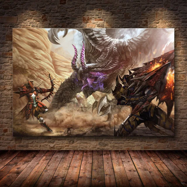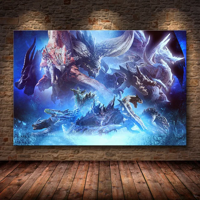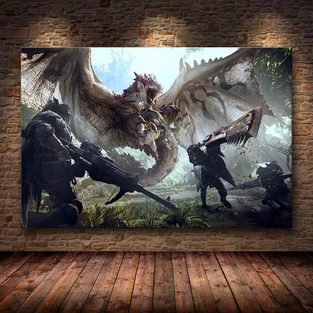 Картина без рамки с изображением монстра Хантера мира на HD холсте ...