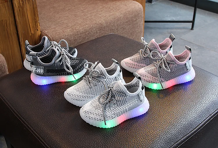 Детские светящиеся кроссовки, дышащая сетчатая обувь со светодиодам...