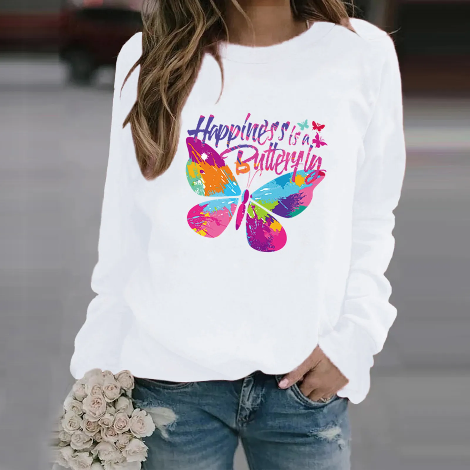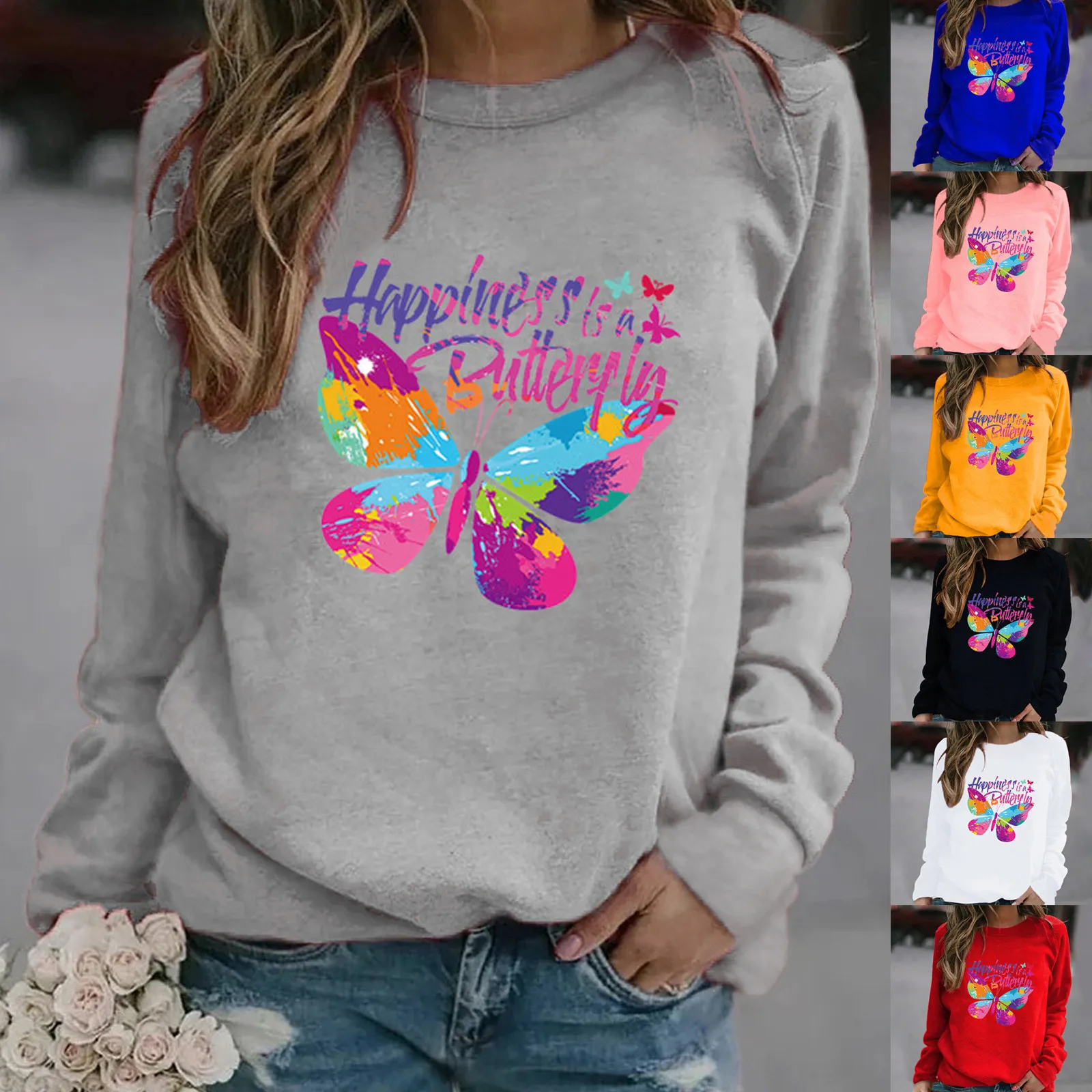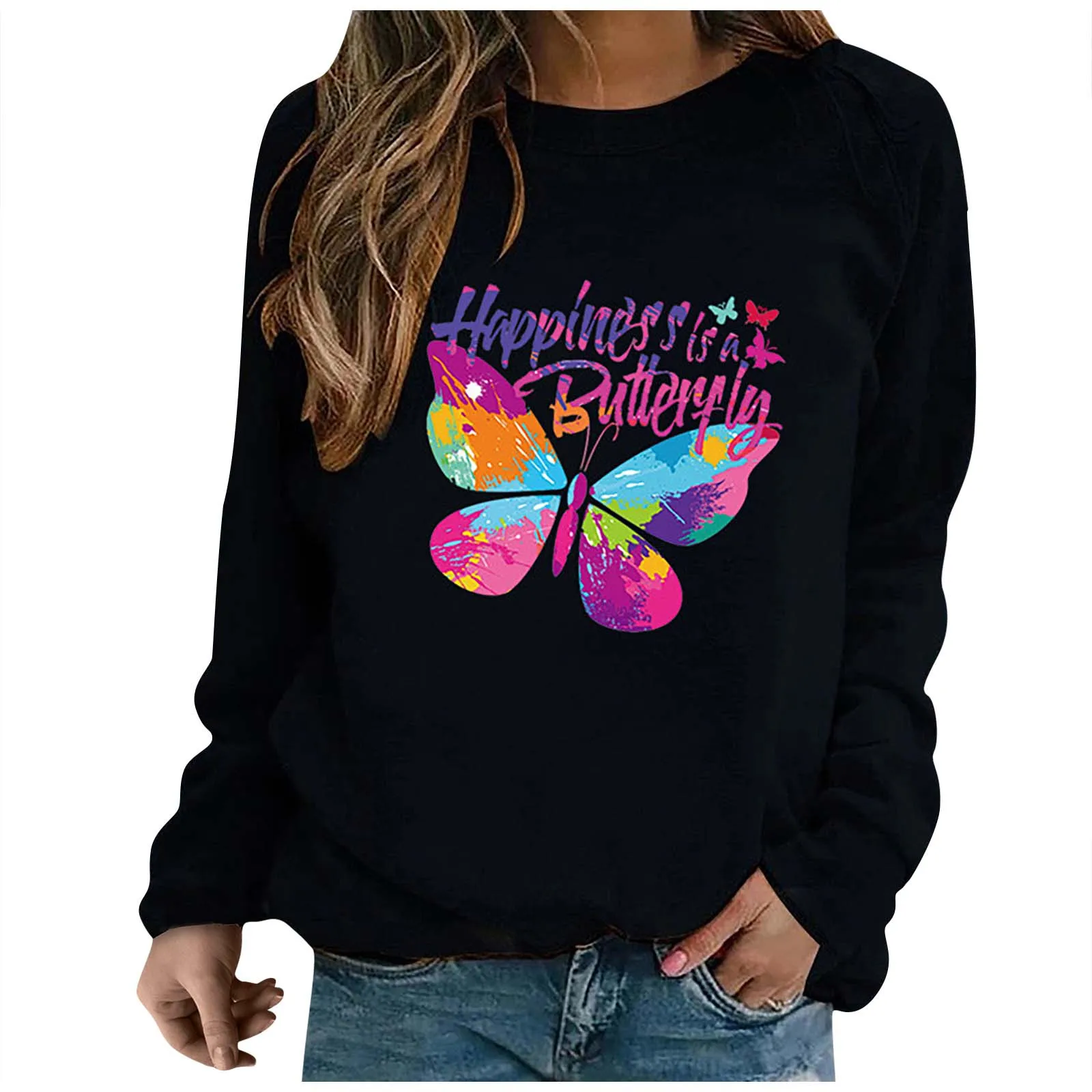 Свитшот женский с круглым вырезом, элегантный пуловер с длинным рукавом и принтом бабочки, повседневное свободное худи, спортивный костюм, уличная одежда, осень 2020