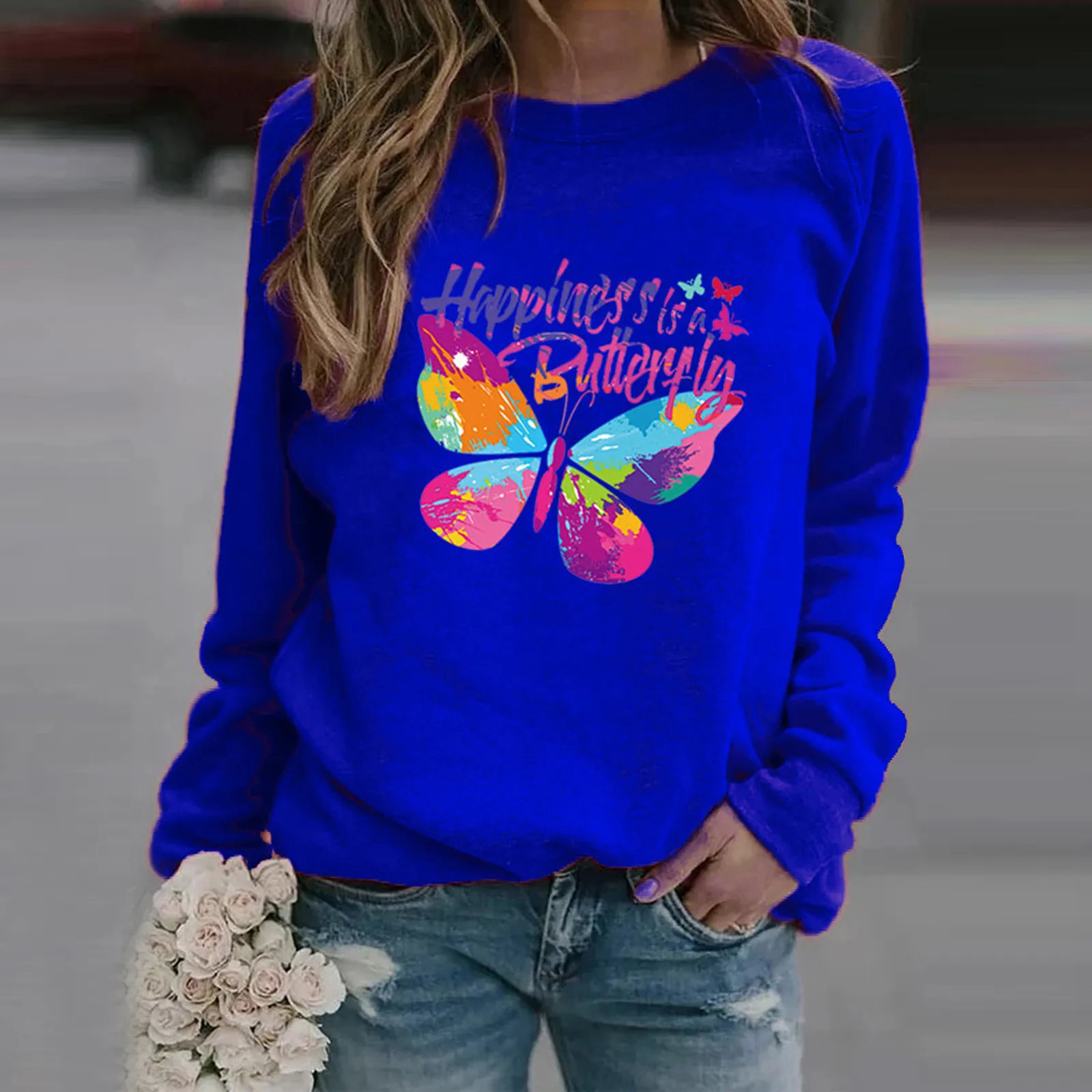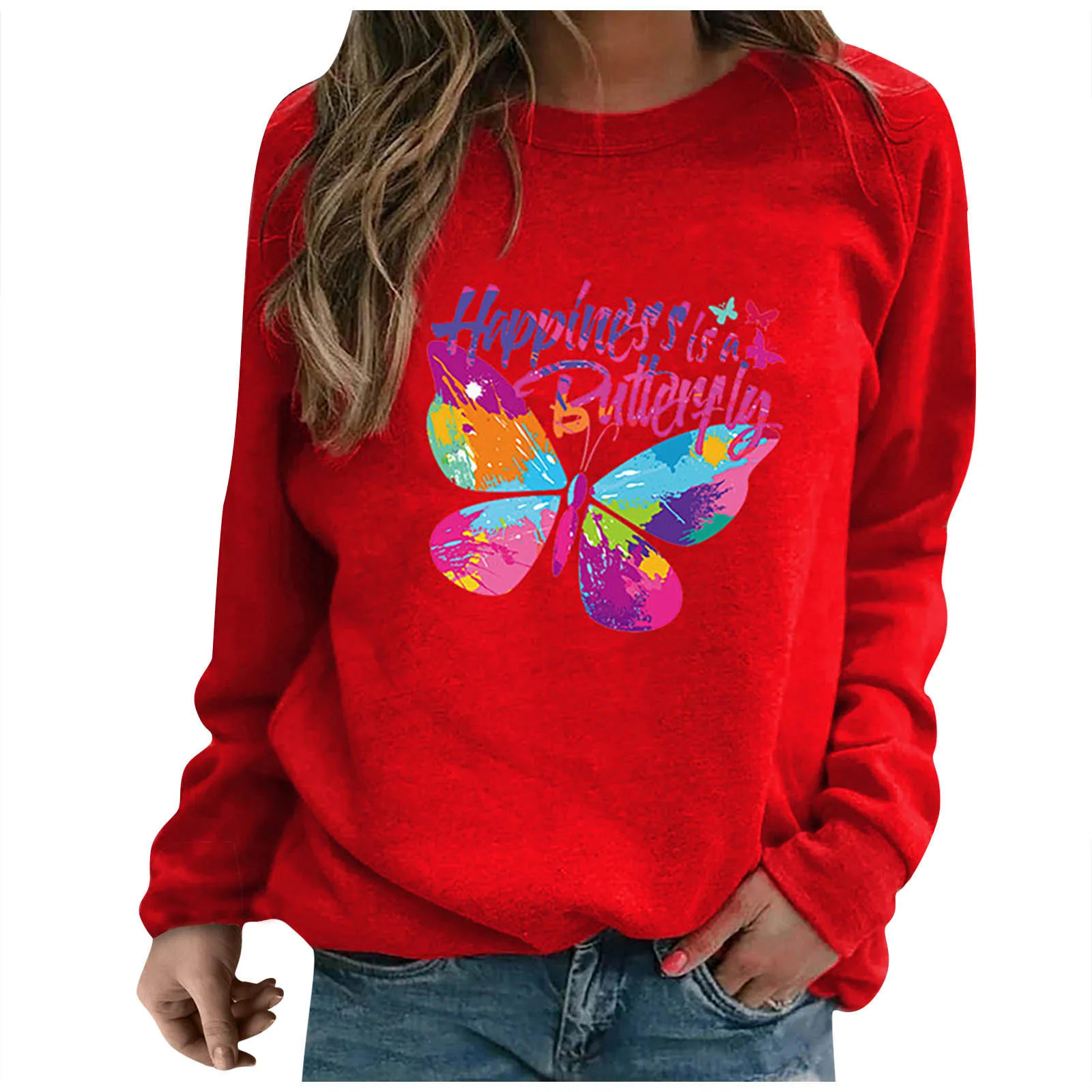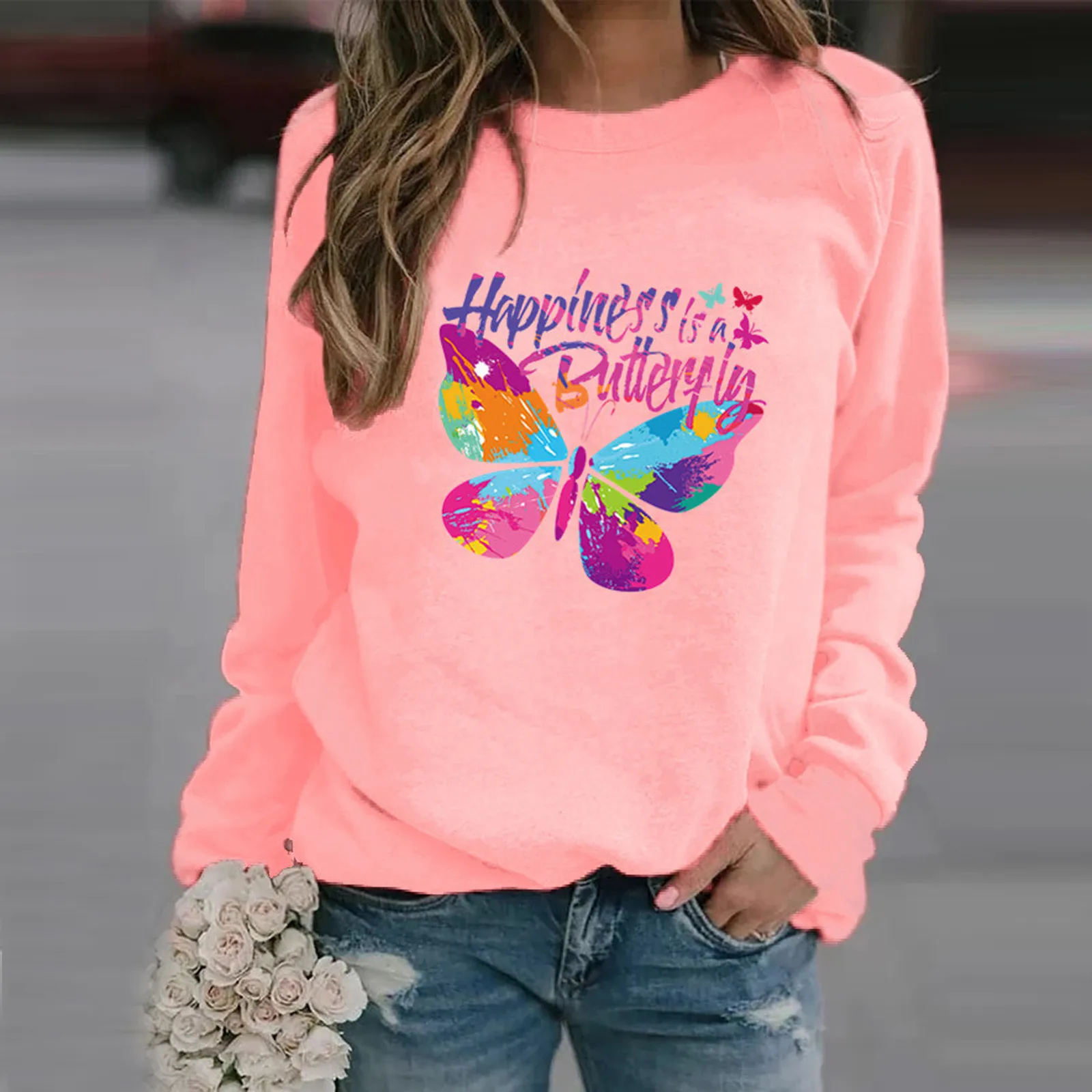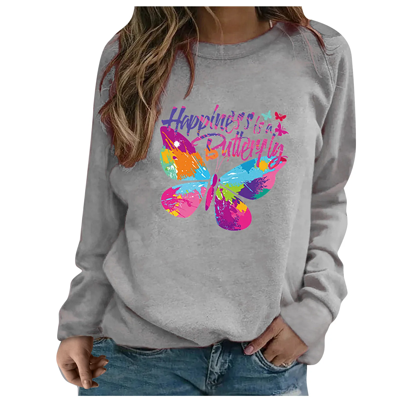 Свитшот женский с круглым вырезом, элегантный пуловер с длинным рукавом и принтом бабочки, повседневное свободное худи, спортивный костюм, уличная одежда, осень 2020