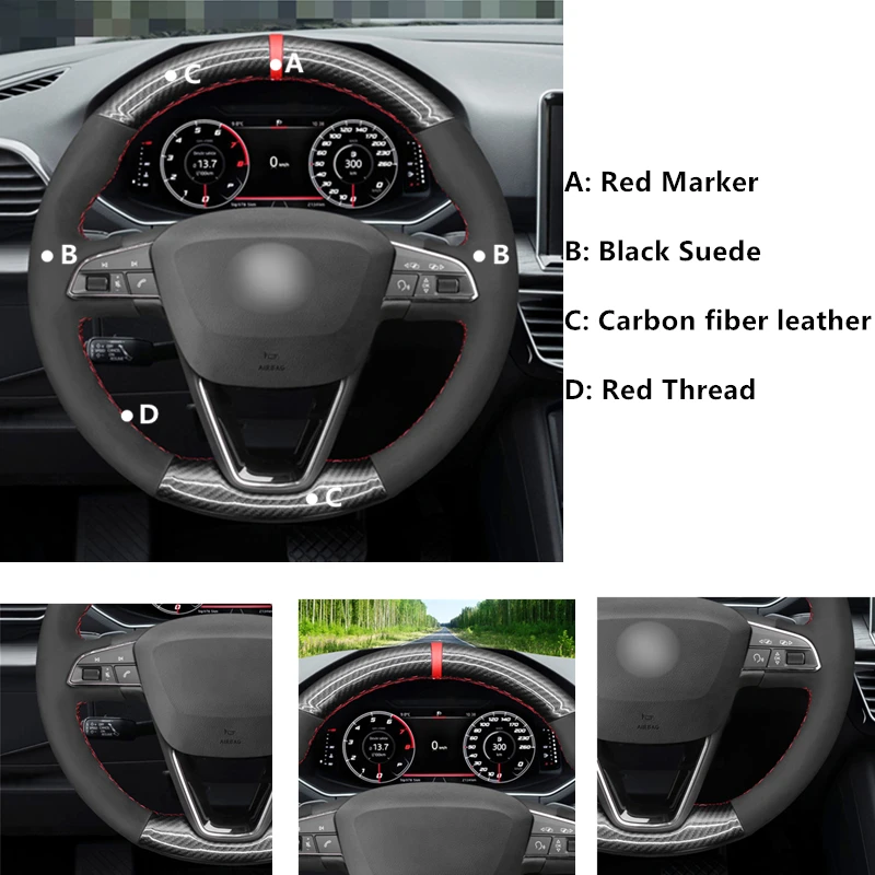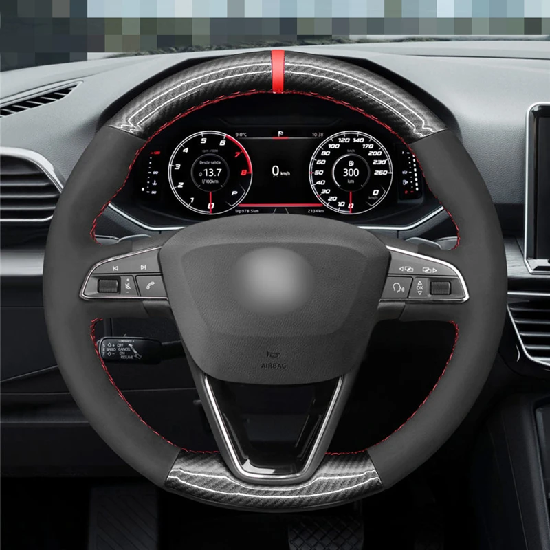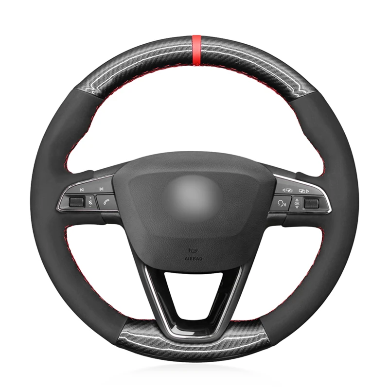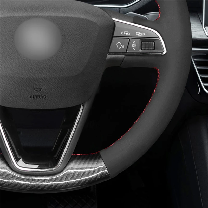 Черные замшевые чехлы рулевого колеса автомобиля из углеродного волокна для Seat Leon 5F Mk3 2013-2020 Ibiza 6J Tarraco Arona Ateca Alhambra