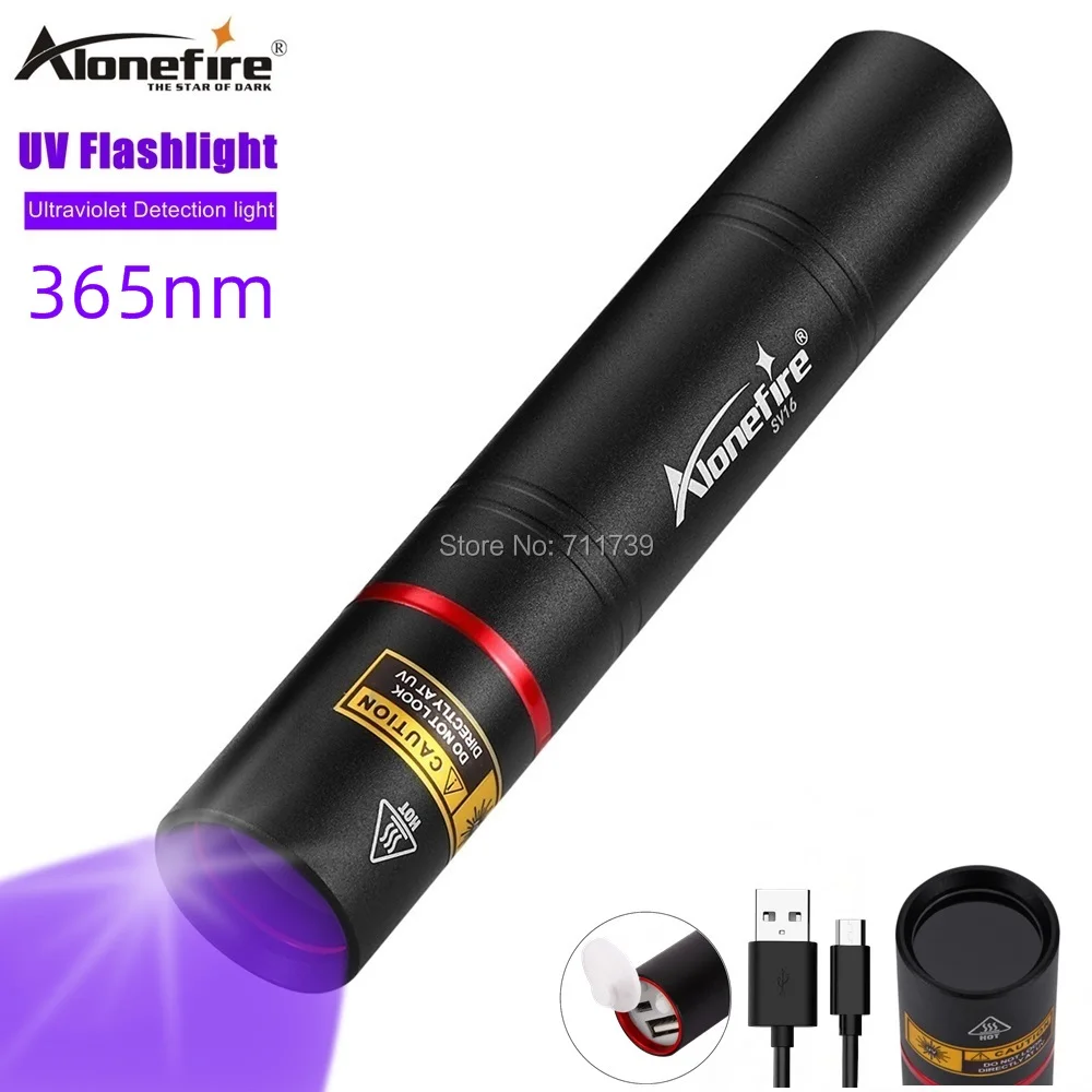 Ультрафиолетовый фонарь Alonefire SV16, перезаряжаемый светодиодный фонарь с черным свесветильник, 365 нм, 5 Вт, с USB, Ультрафиолетовый фонарь для Тестирования Мочи домашних животных, 365 нм