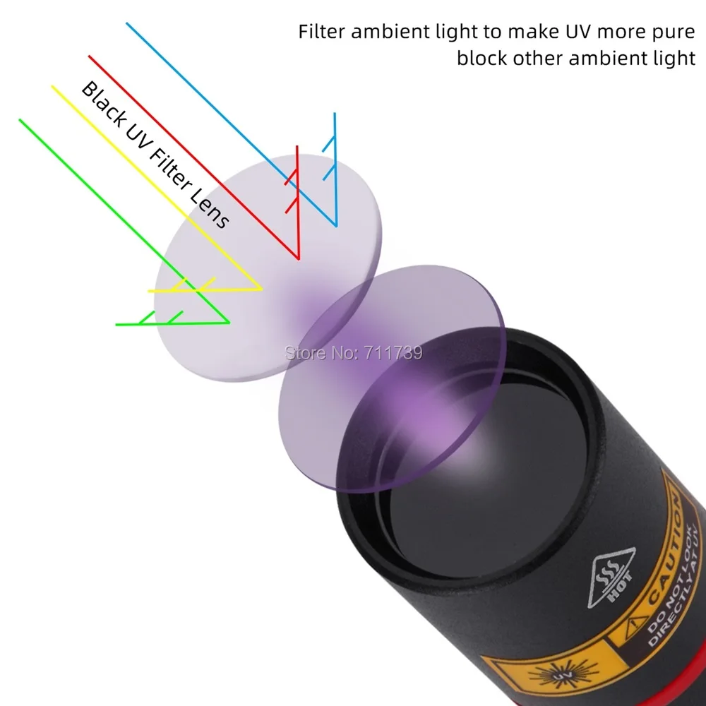 USB Перезаряжаемый 365нм УФ-фонарик с черным фильтром