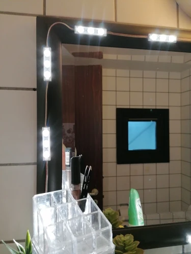 Works beautifully! USB chord and button work as their supposed, and the light is great. I have very bad lightning in my bathroom so I'm pleased. Pictured below are pictures when the light is off and on