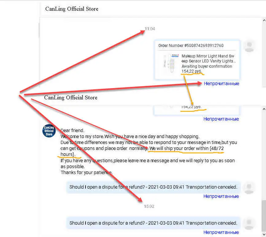 отмена транспортировки . после спора моментальный возврат средств , продавец честный