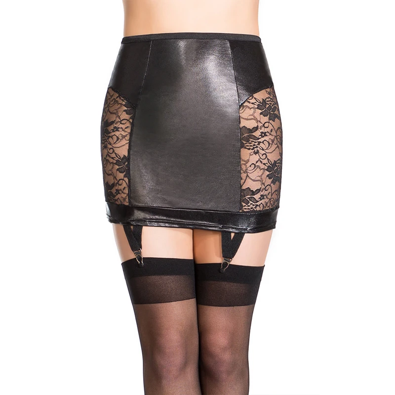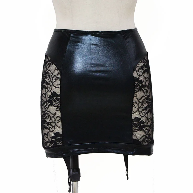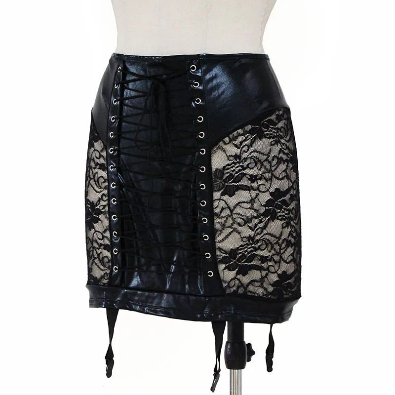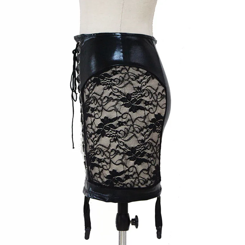 Сексуальная Женская Черная мини-юбка-карандаш из искусственной кожи на шнуровке Готическая сетчатая прозрачная Лоскутная панк-юбки для женщин 2020