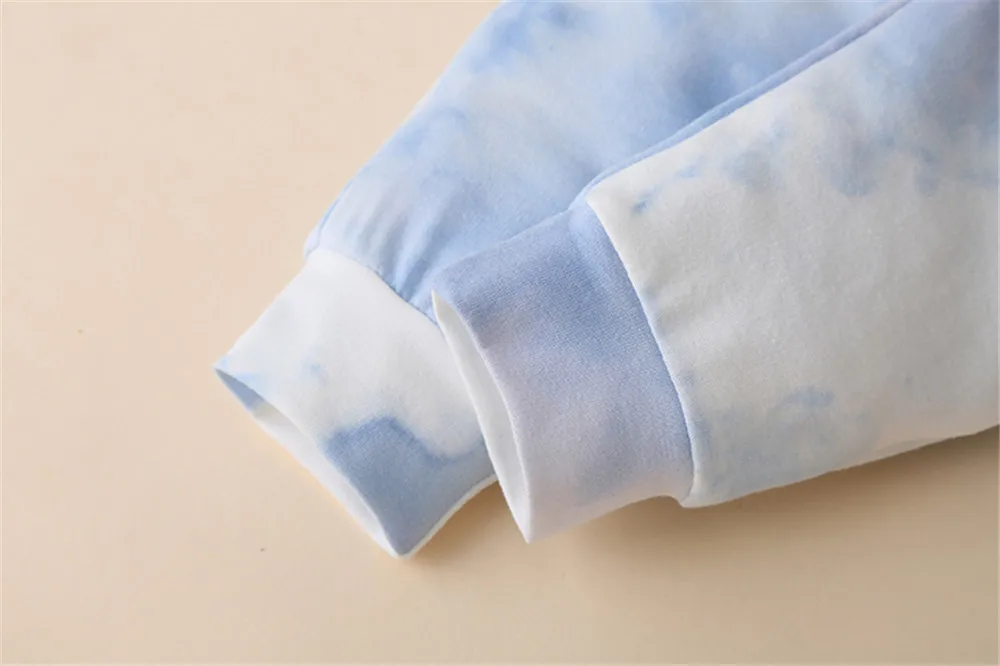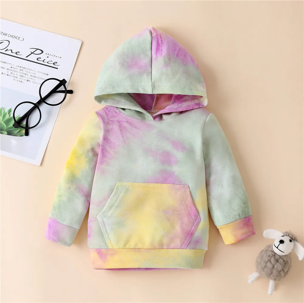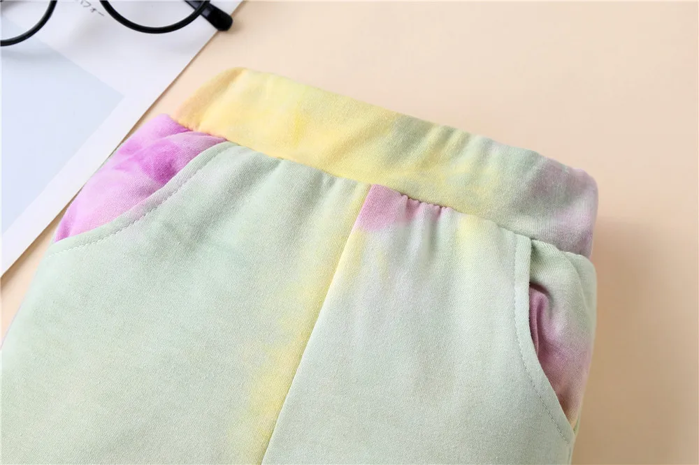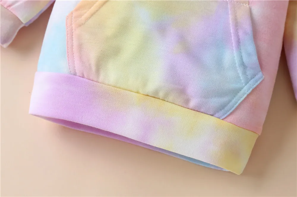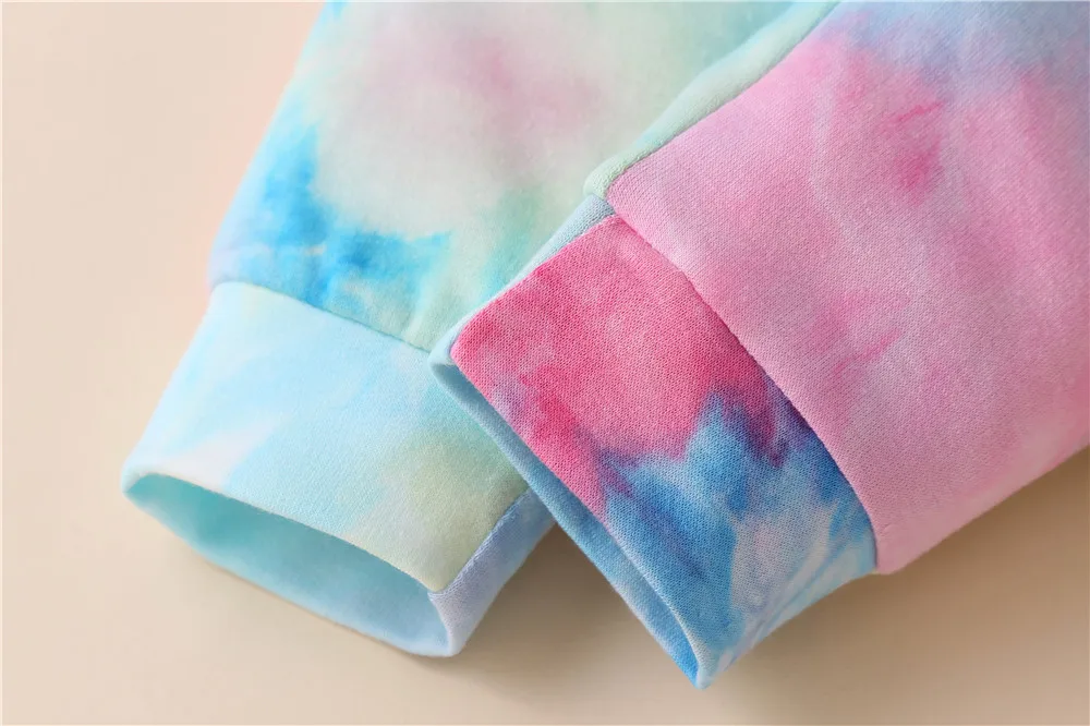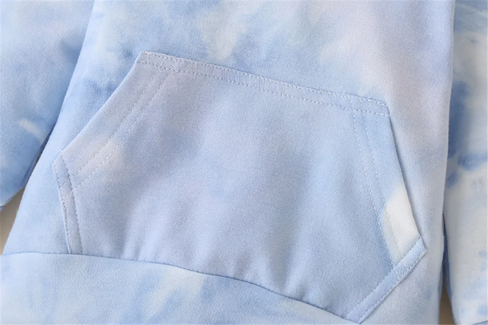 Модный Детский Повседневный костюм с принтом в виде галстука-красителя из 2 предметов толстовка с длинными рукавами и большим карманом свободные брюки Повседневная одежда