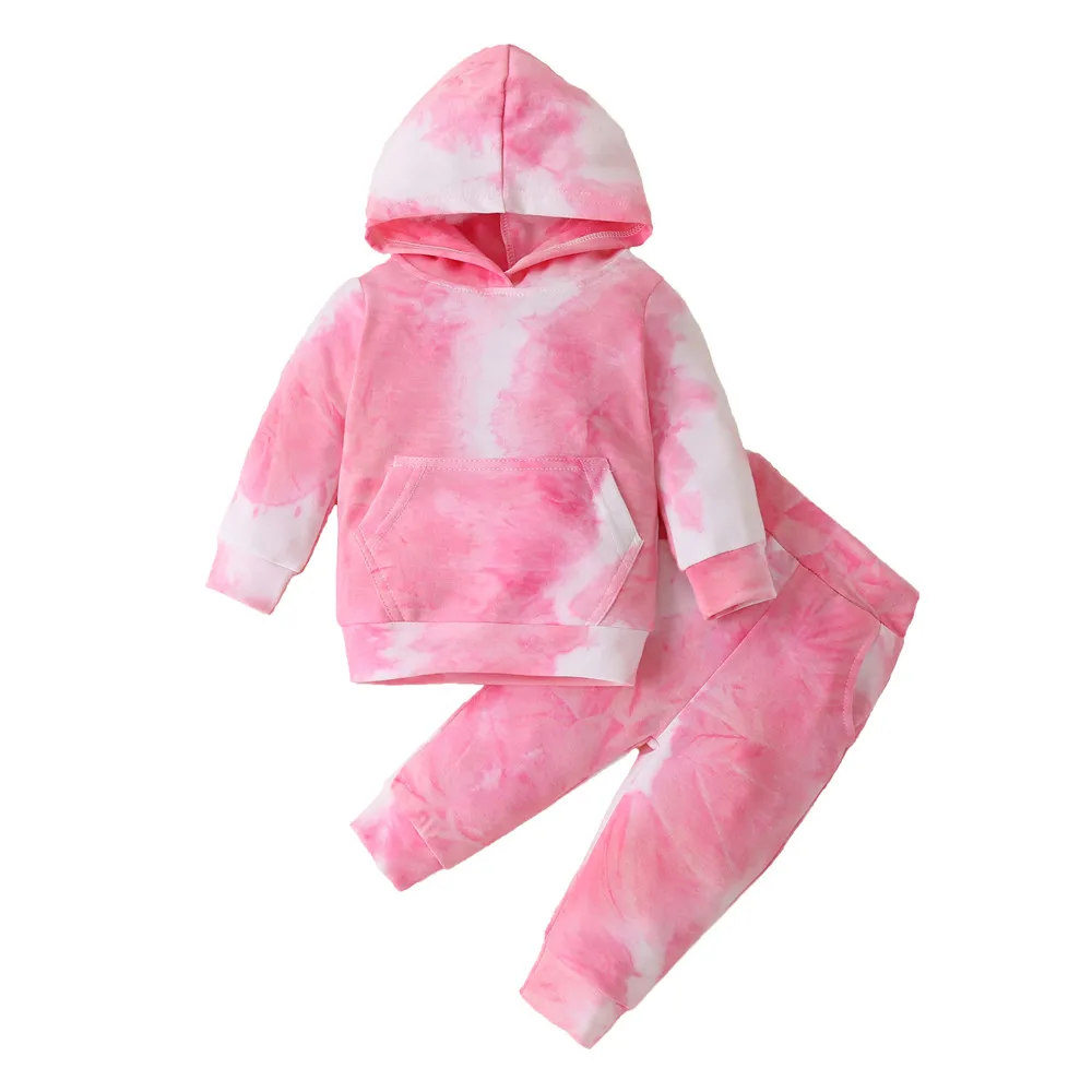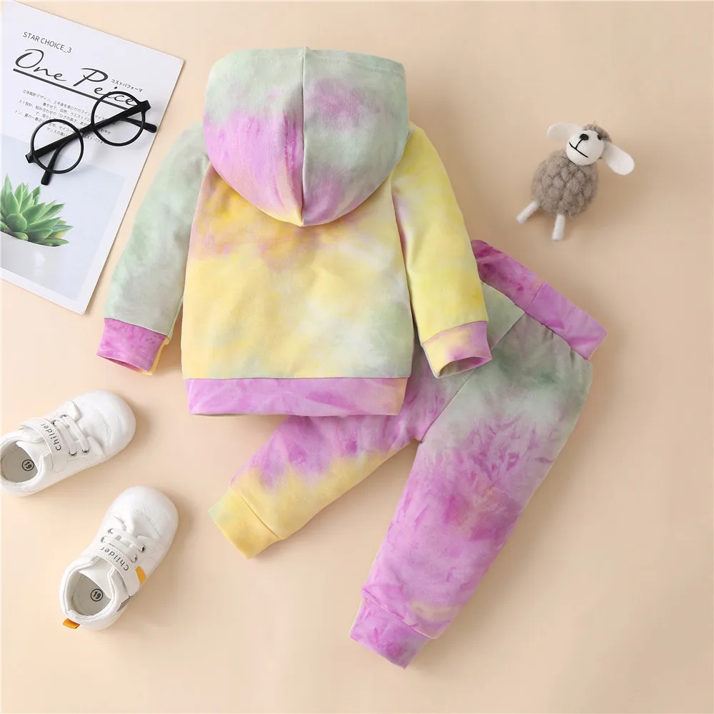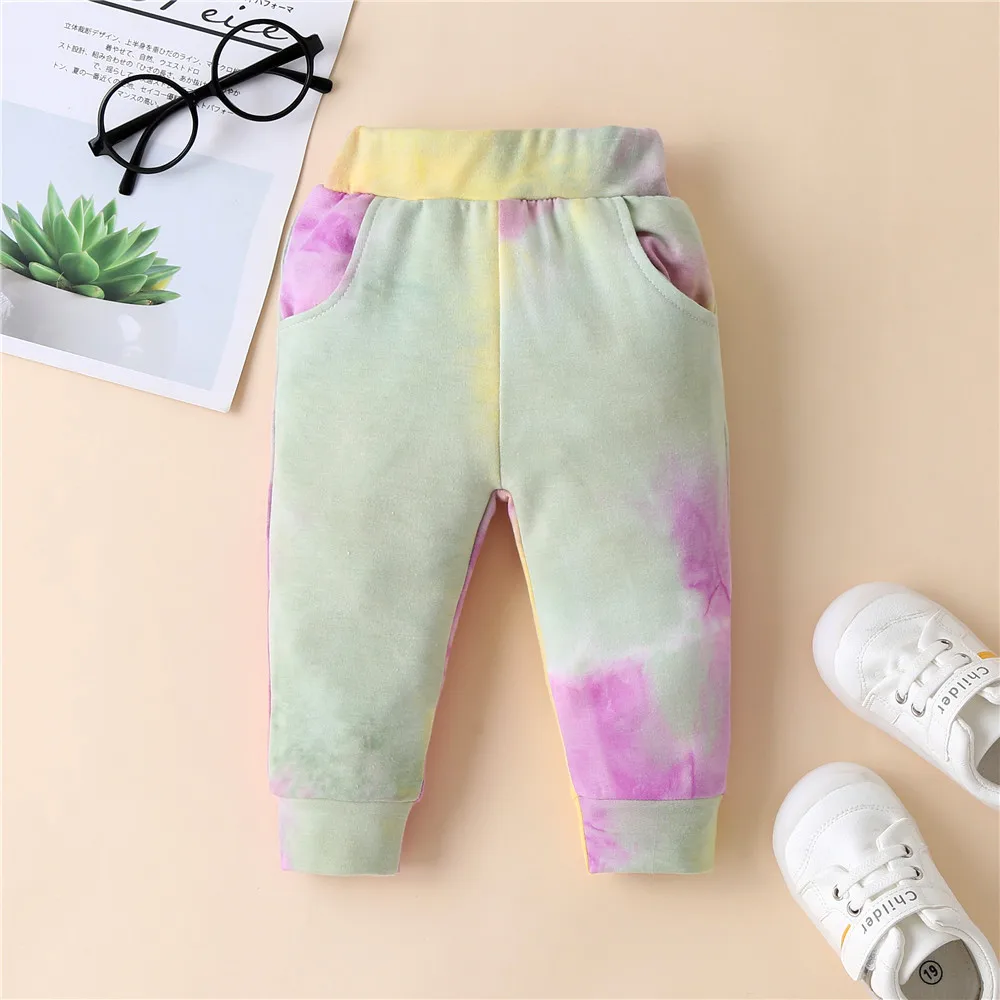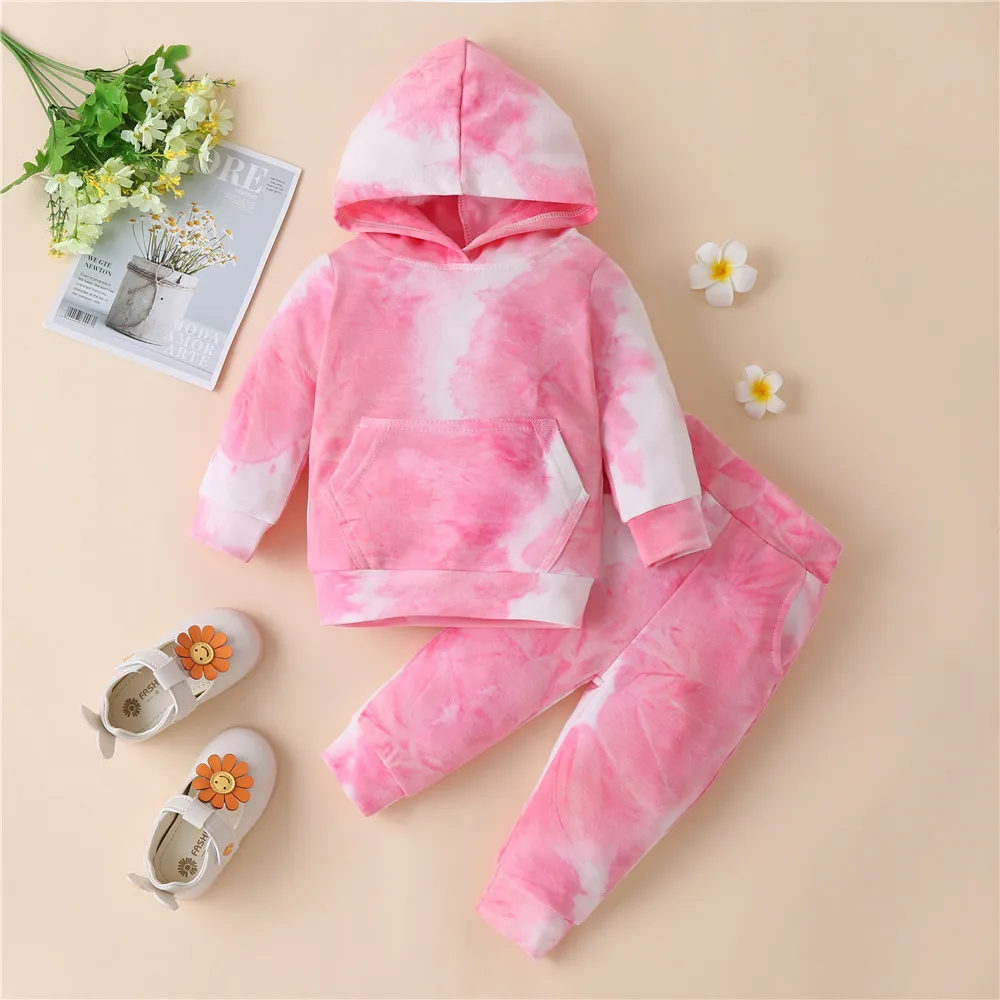 Модный Детский Повседневный костюм с принтом в виде галстука-красителя из 2 предметов толстовка с длинными рукавами и большим карманом свободные брюки Повседневная одежда