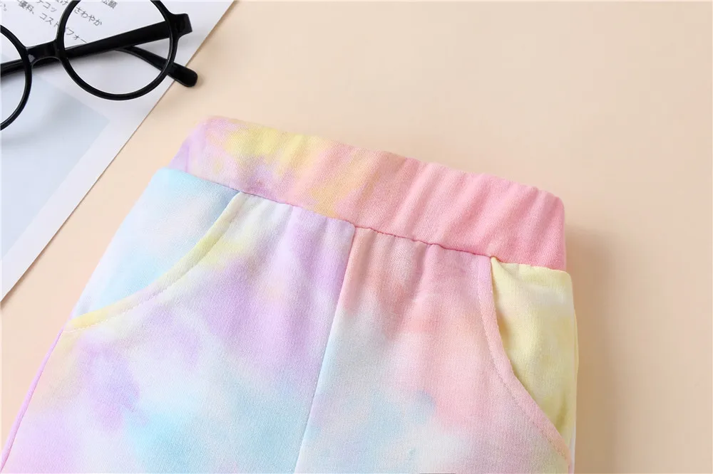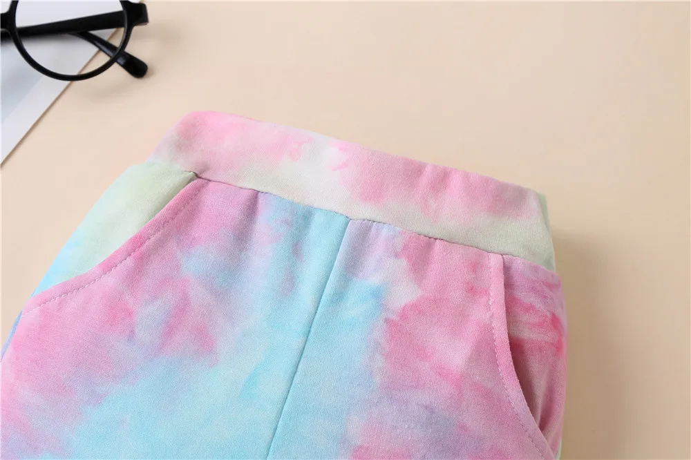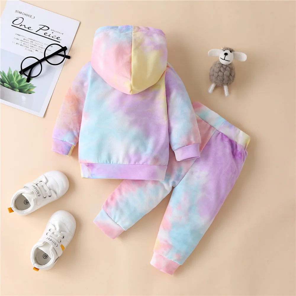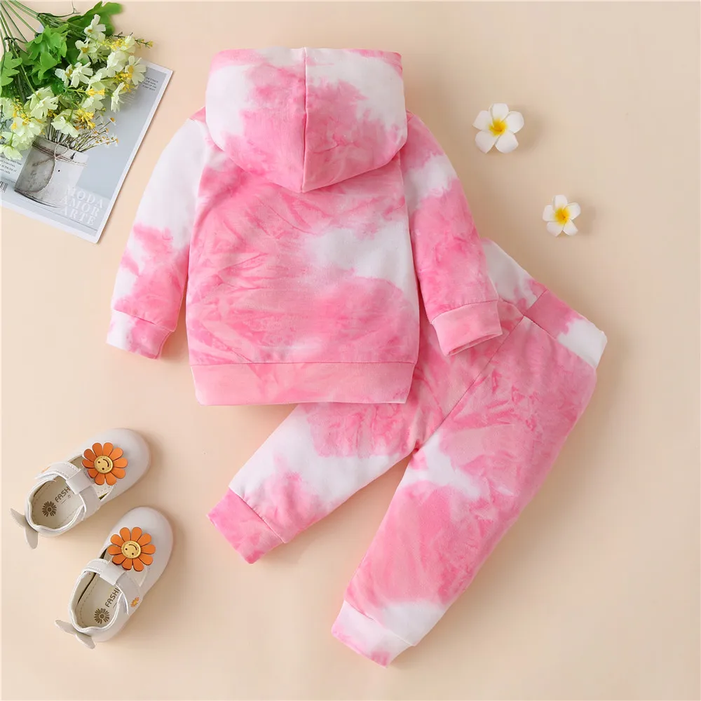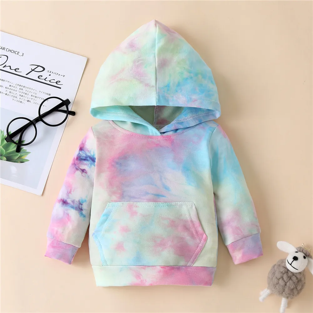 Модный Детский Повседневный костюм с принтом в виде галстука-красителя из 2 предметов толстовка с длинными рукавами и большим карманом свободные брюки Повседневная одежда