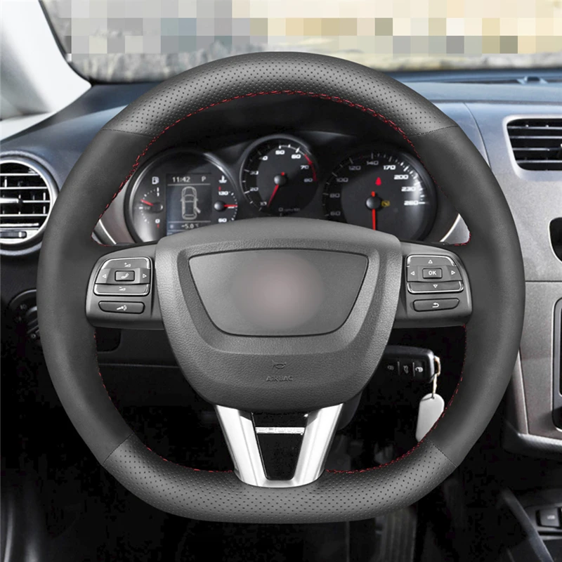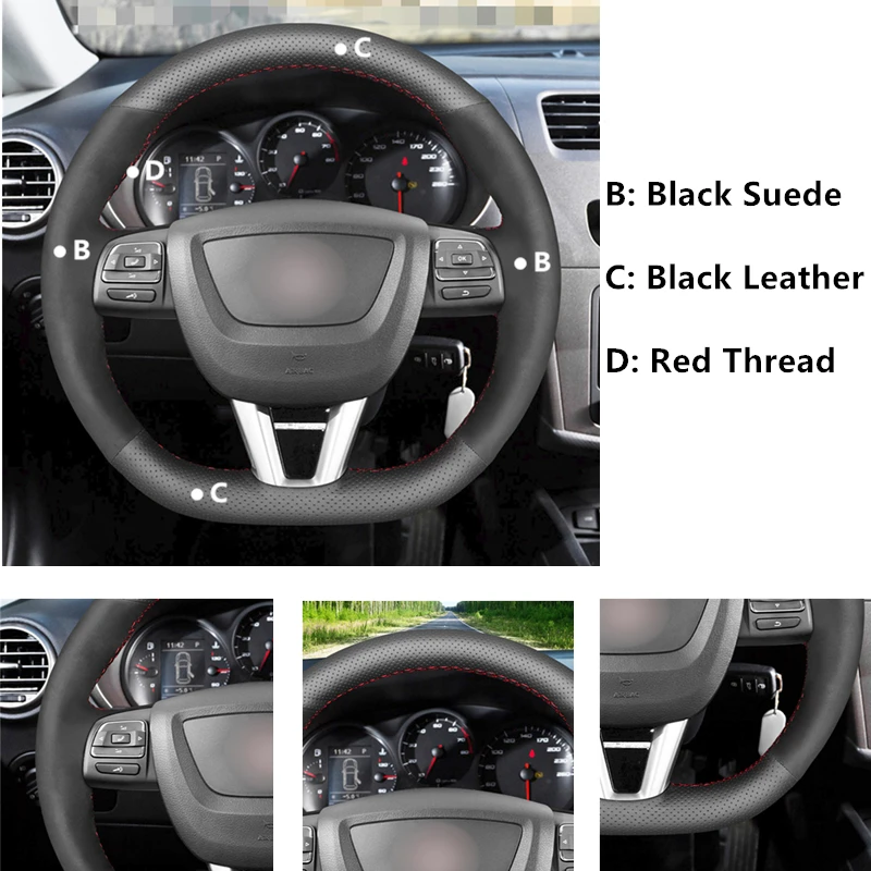 Черный кожаный замшевый чехол рулевого колеса автомобиля для Seat L...