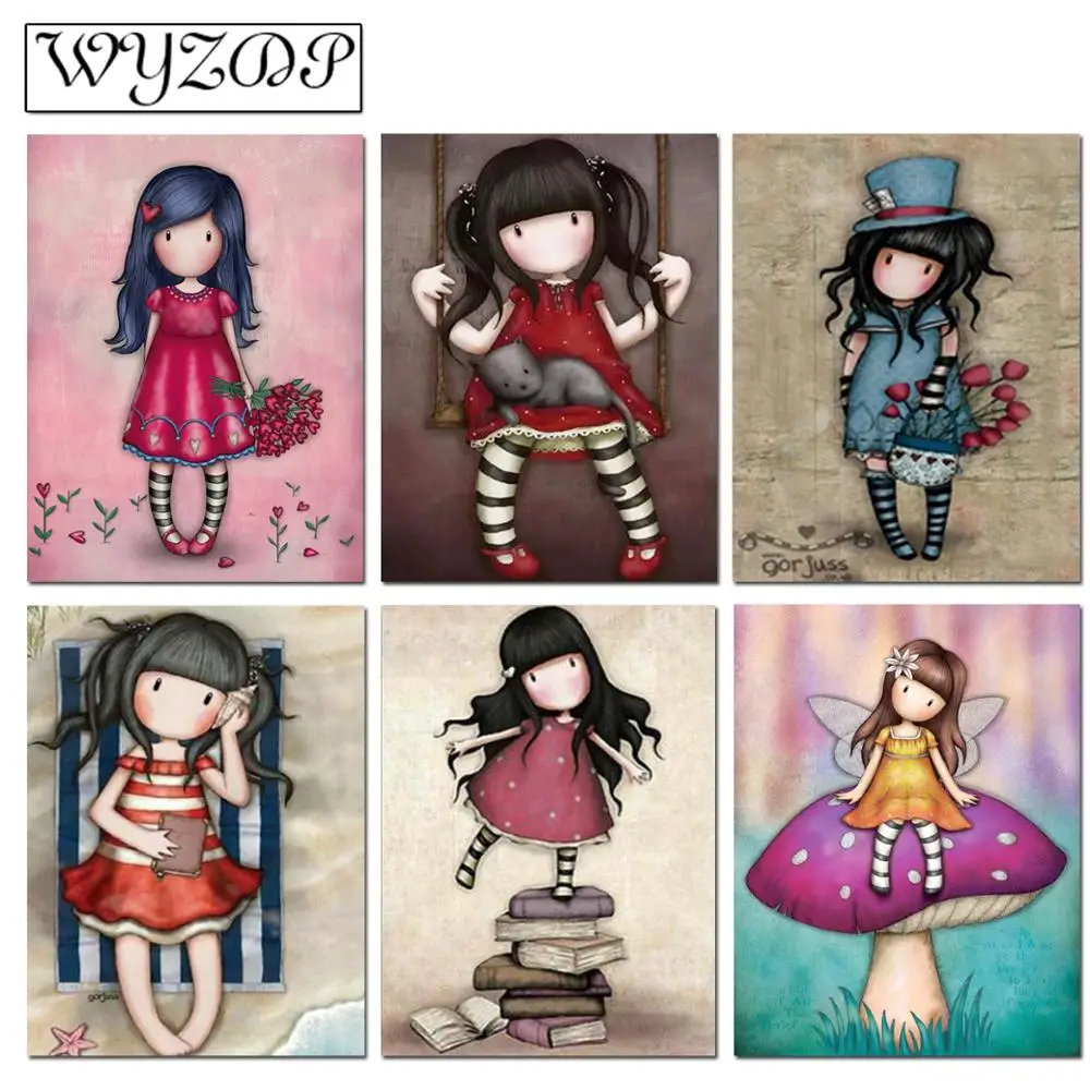 5D алмазная картина, мультяшная девушка, картина полностью квадратнаякруглая Алмазная вышивка, вышивка крестиком, подарочные наборы для дома, decorWYZWYZ201007