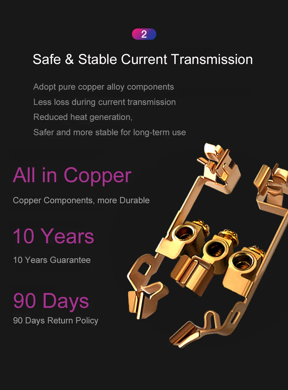 Медь толщиной 0,7 мм. Безопасная электрическая энергия и долгий срок службы.