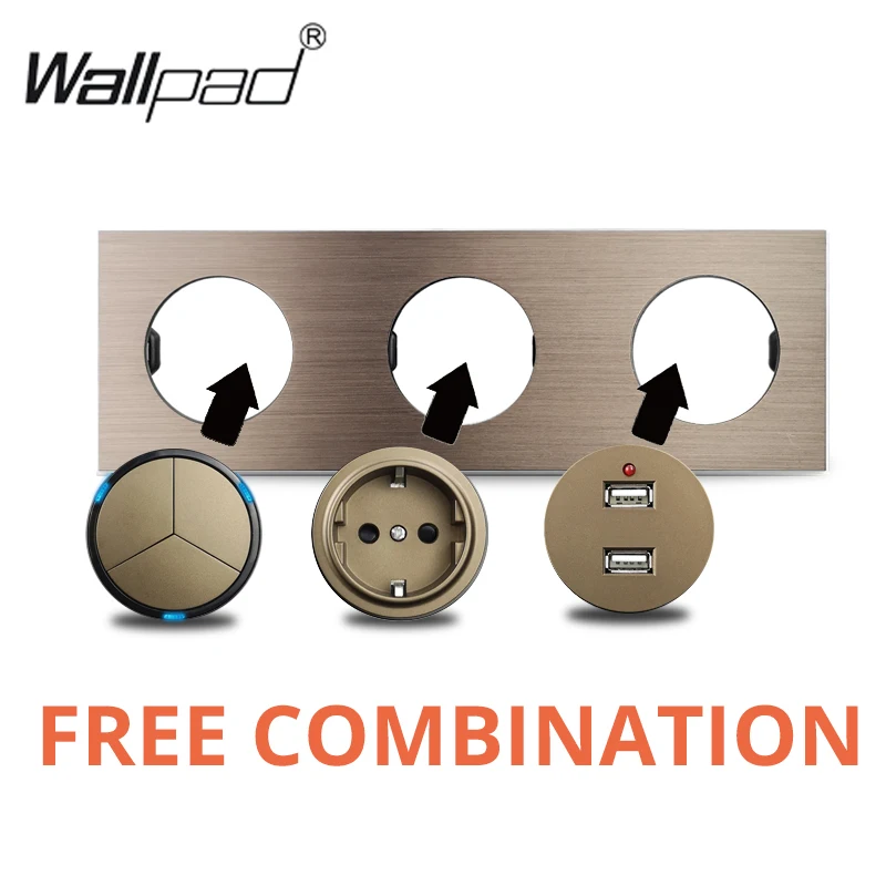 Wallpad L6, сделай сам, 1, 2, 3, 4 набора, промежуточный шаг, DP, 2P, переключатель, коричневый, алюминиевая каркасная панель, Бесплатная комбинация
