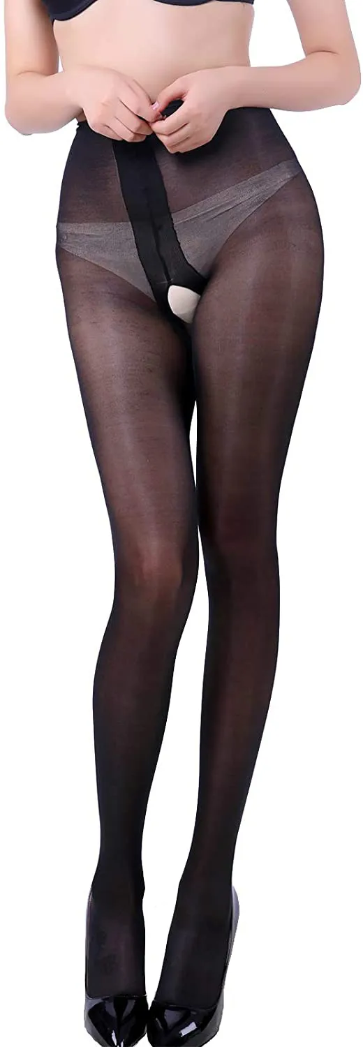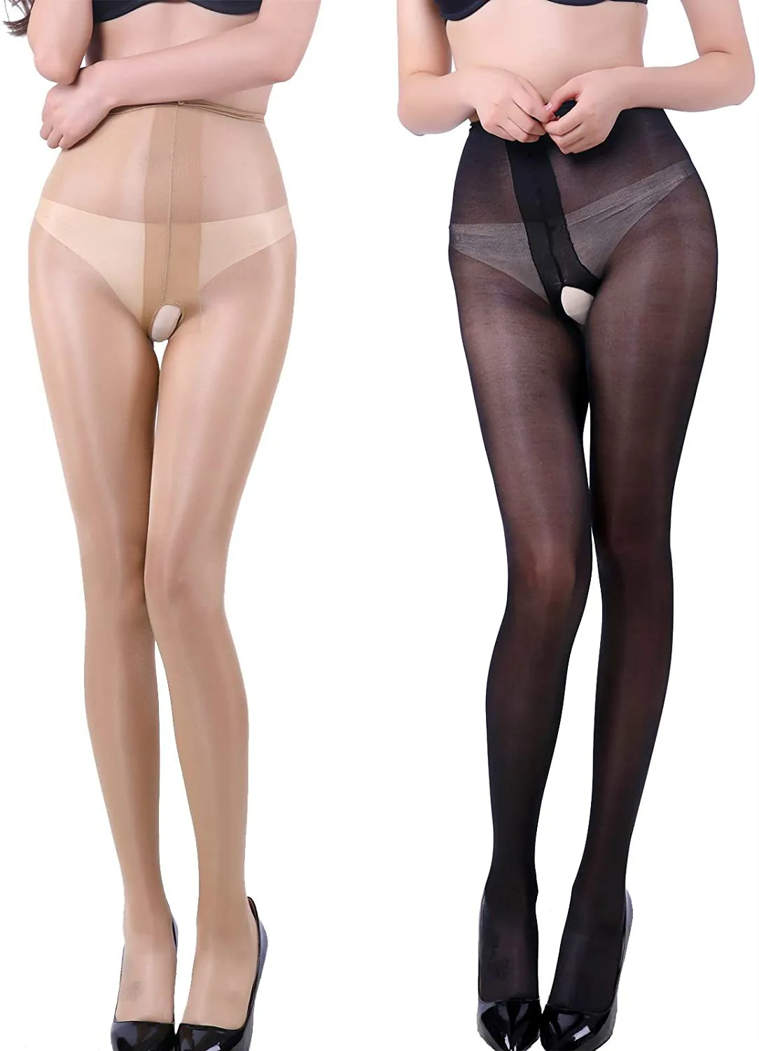 Колготки женские с высокой талией, пикантные прозрачные блестящие колготки с открытой промежностью, шелковые чулки, подарок для женщин и девушек