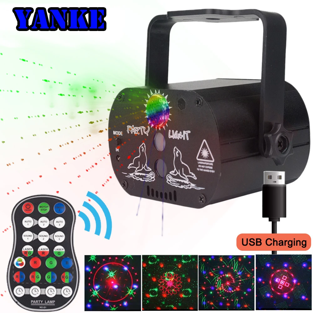 Мини-RGB-дискотесветильник YANKE, светодиодный лазерный сценический проектор, USB, перезаряжаемый, красный, синий, зеленый, лампа для диджеев, свадьбы, дня рождения, вечеринки