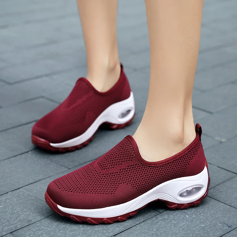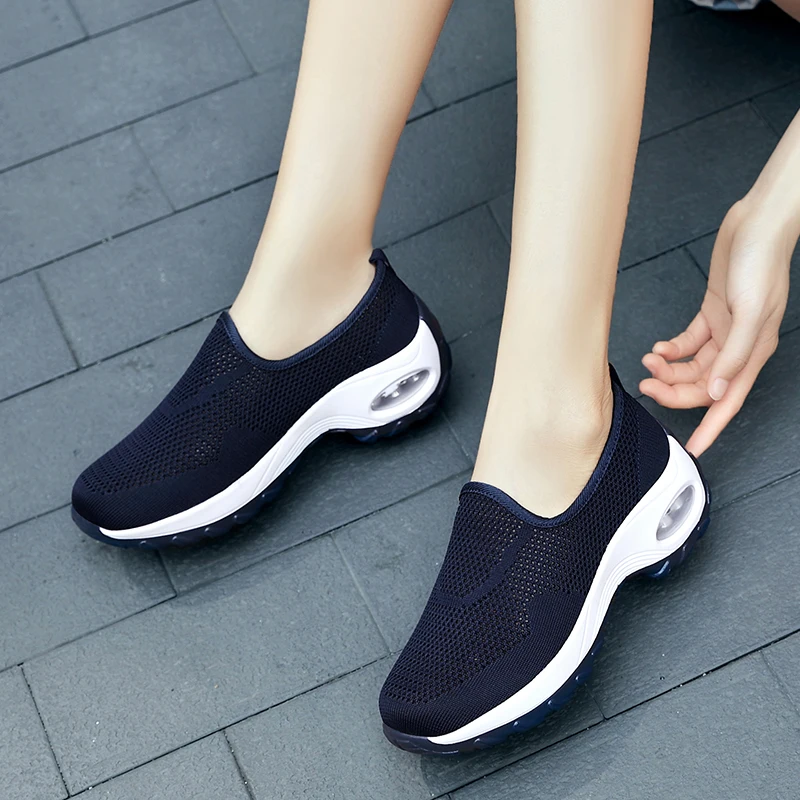 Женские прогулочные повседневные кроссовки Flywire с воздушной подошвой, модная обувь на танкетке, легкие рабочие носки на мягкой подошве