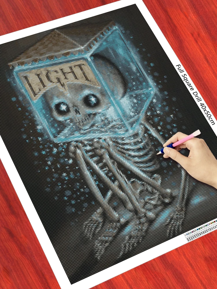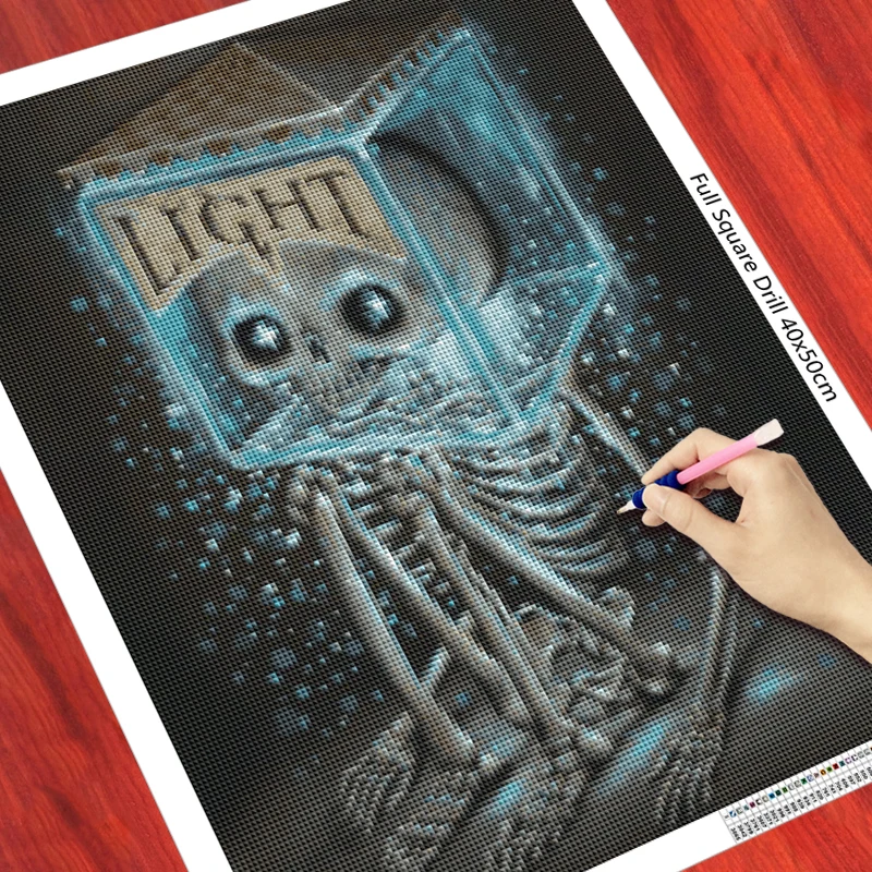 Полностью Квадратный бриллиант, 5D картина вышивка крестиком мультфильм инопланетянин Череп Кошка будильник свеча сделай сам круглый рисунок мозаика 536