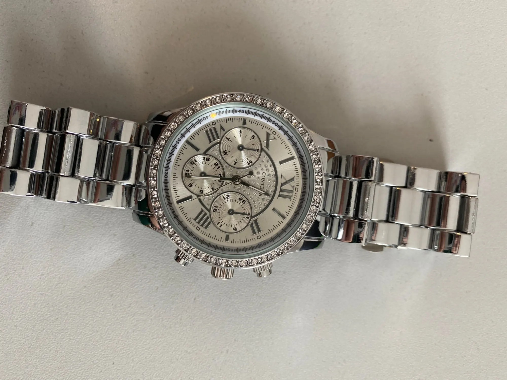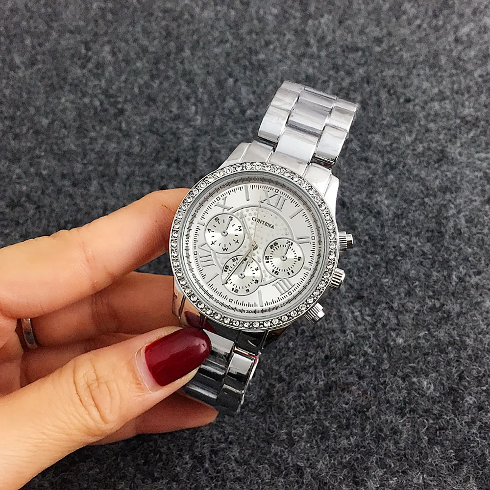 Часы женские кварцевые, серебристые, со стразами