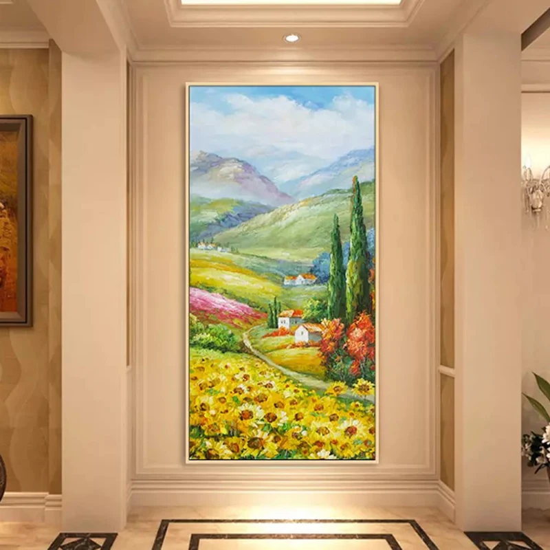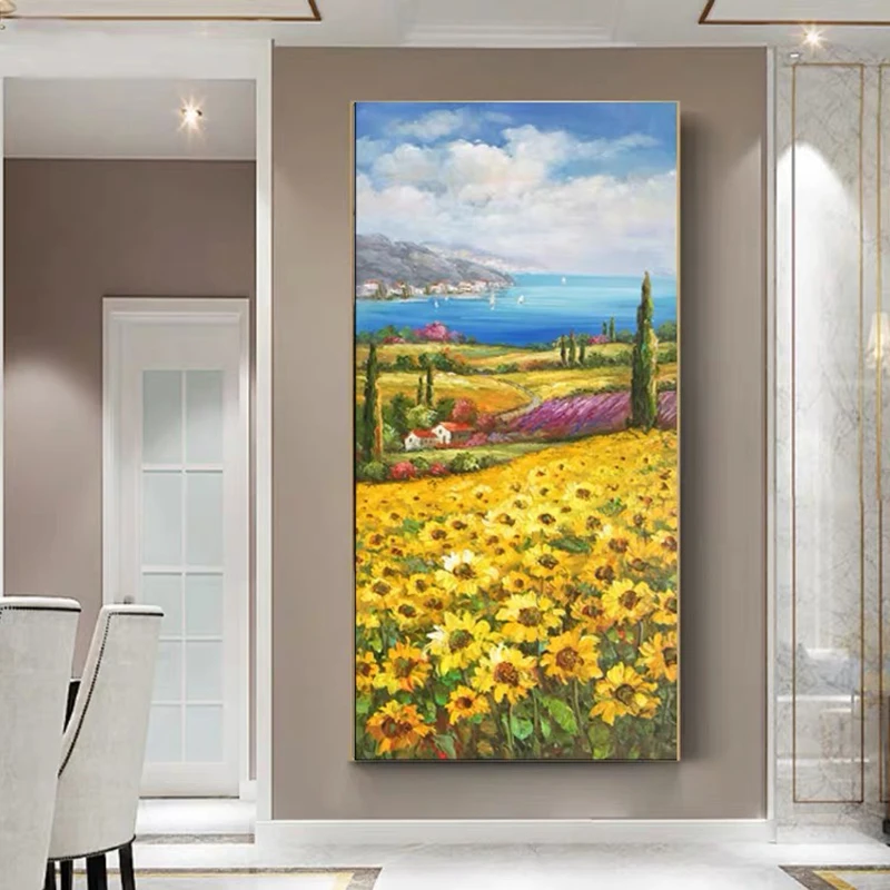 Абстрактный пейзаж с подсолнухами, Картина на холсте, настенное искусство, для гостиной, домашний декор (без рамки)
