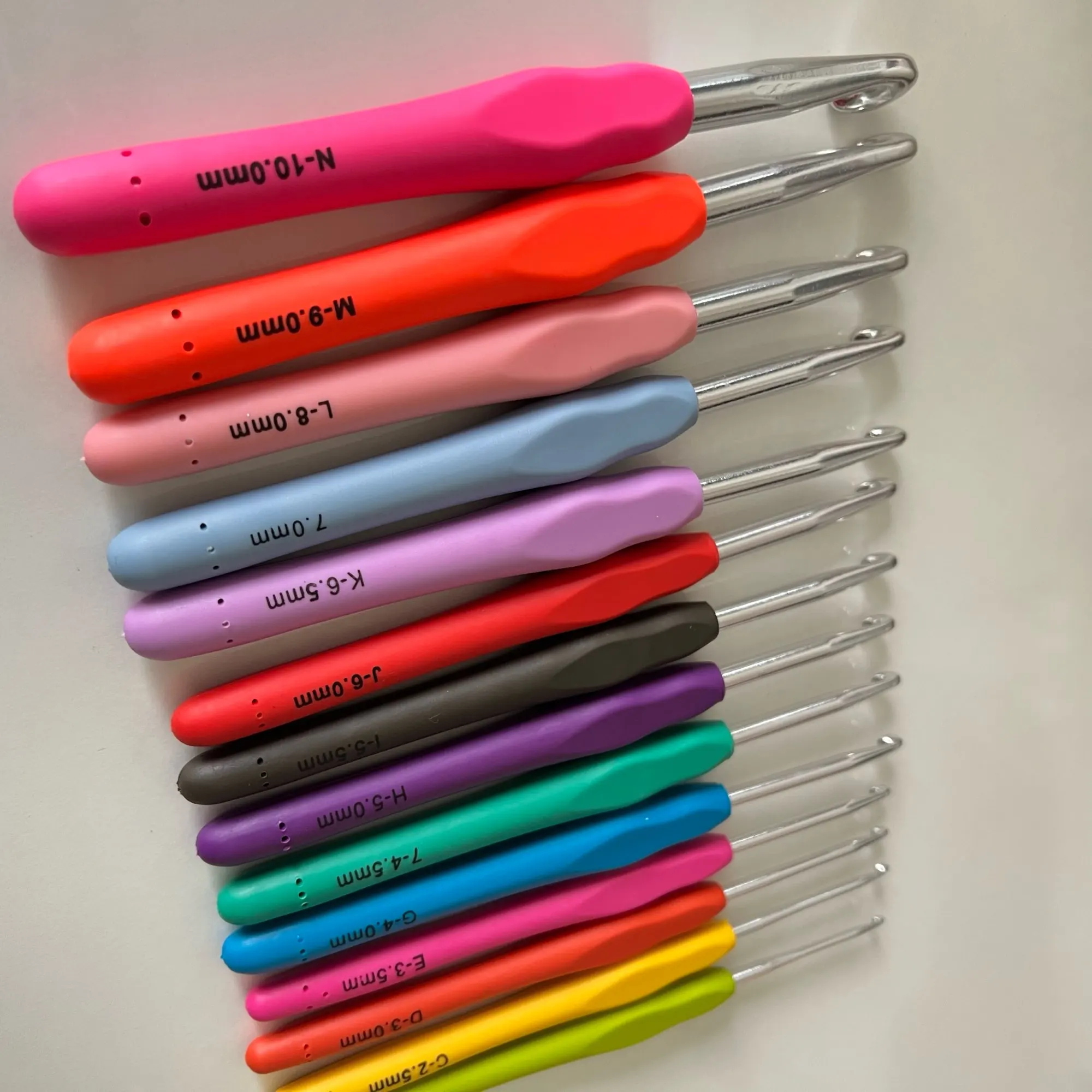 Ручки имеют жесткий каучук на ощупь, не очень мягкие, но достаточно большие, чтобы чувствовать себя комфортно во время использования. Они поставляются в аккуратном маленьком мешочке на молнии с маркером для стежков и несколько других полезных бит и ботинок. Доставка занимает 25 дней в Новую Зеландию. Крючки стоят ожидания :)