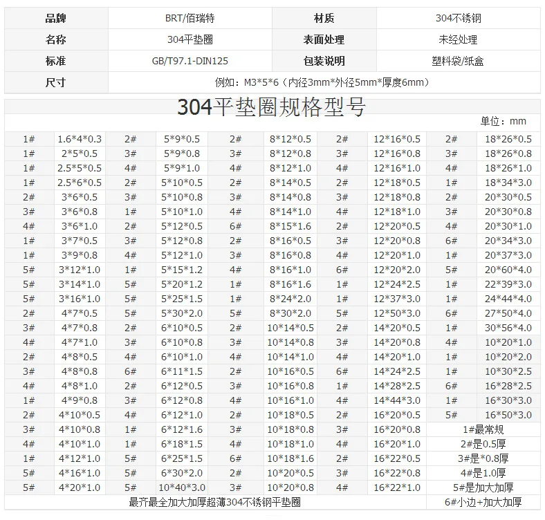 304 плоская утолщенная шайба из нержавеющей стали gasketth, 20 шт.