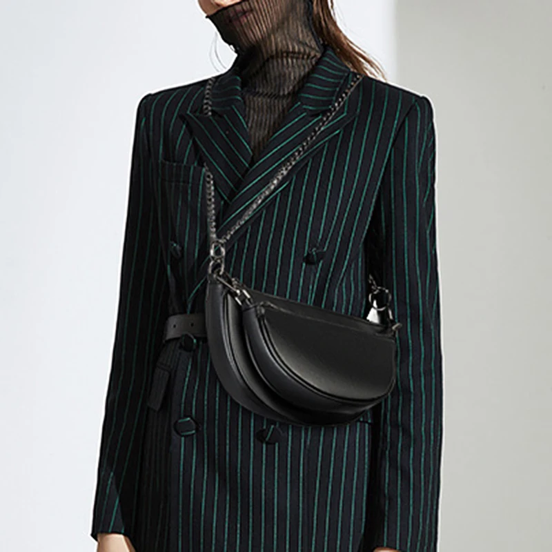 Полукруглая сумка через плечо из искусственной кожи для женщин, однотонная женская сумочка на цепочке, ежедневные сумки на плечо, 2020