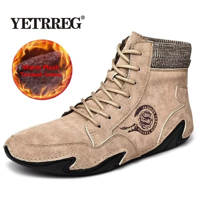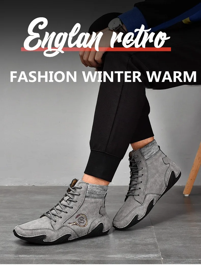 Брендовые зимние ботинки мужские ботинки из спилка высокого качества теплые зимние ботинки из плюша Мужская обувь ручной работы модные мужские мотоциклетные ботинки