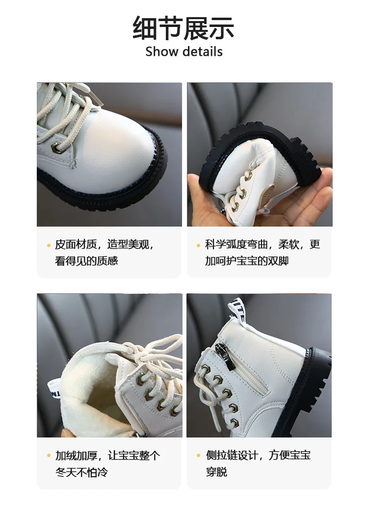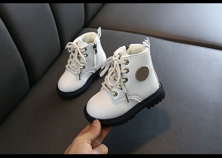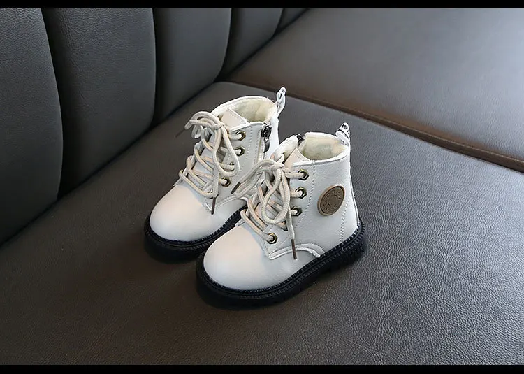 Зимние ботинки для детей от 1 до 5 лет, модные ботинки martin для мальчиков и девочек, пушистые плюшевые теплые детские хлопковые ботинки, высокое качество