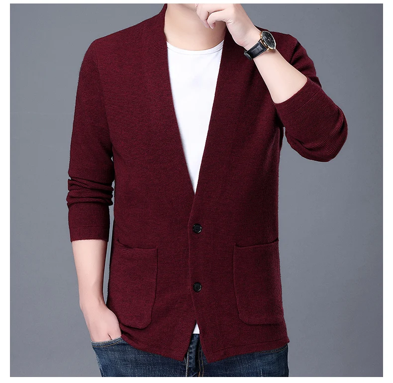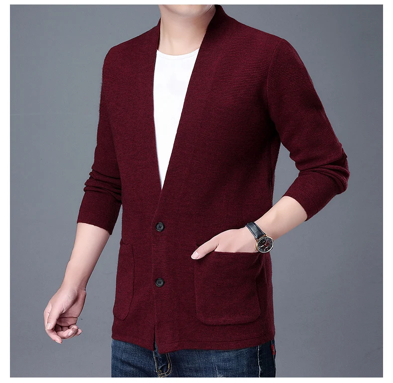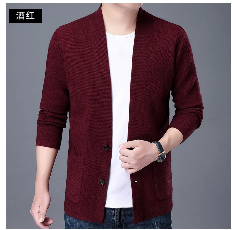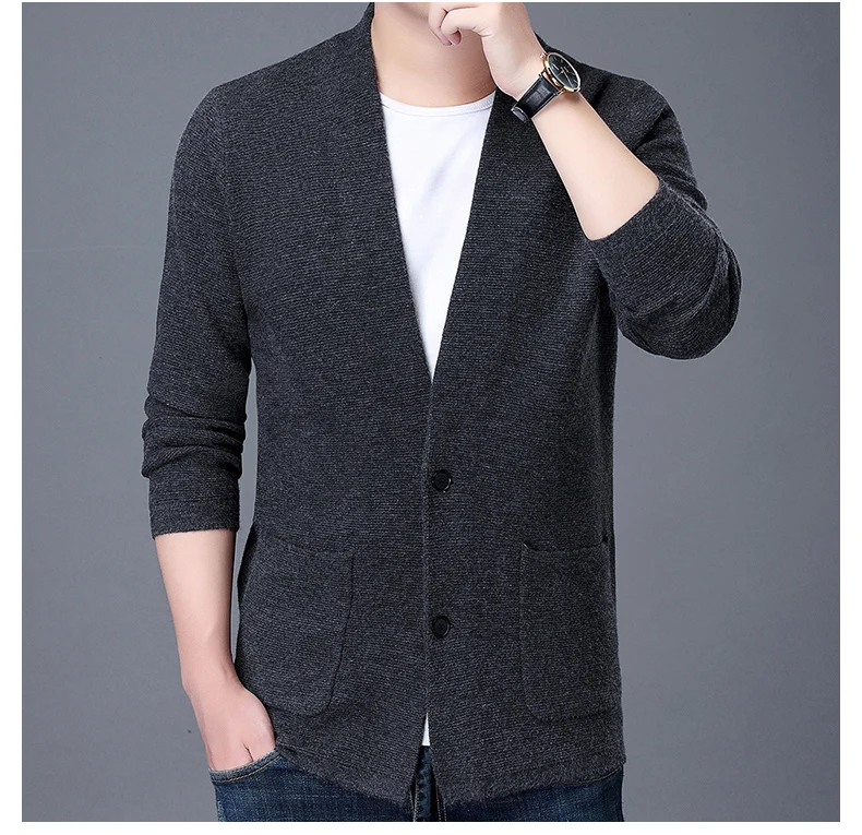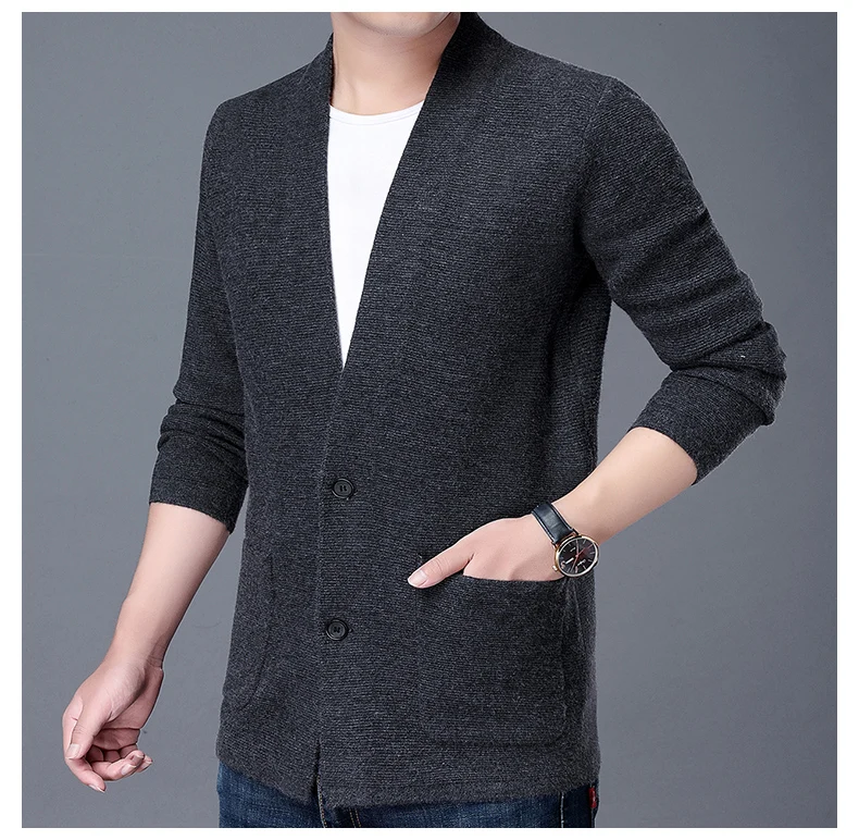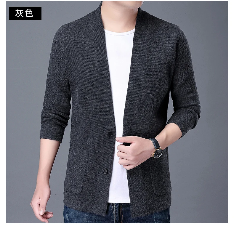Мужской вязаный кардиган с V-образным вырезом, повседневное шерстяное пальто высокого качества для осени и зимы, 2021