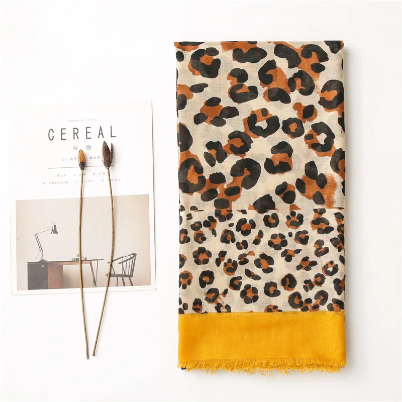 2022 весенне-летний женский хлопковый шарф, пляжный хиджаб с леопар...