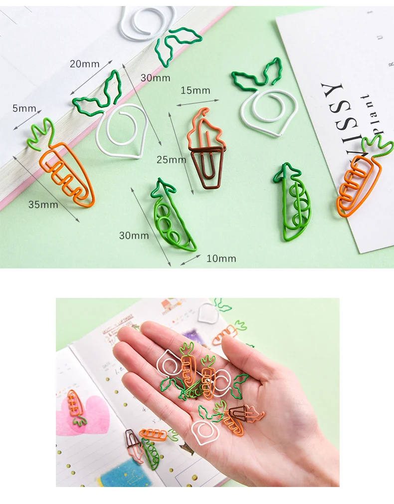 MOGII 10 шт.упак. Back to School канцелярские принадлежности Декоративные Kawaii клип милый для фруктов, моркови скрепки для бумаги необычной формы для офиса