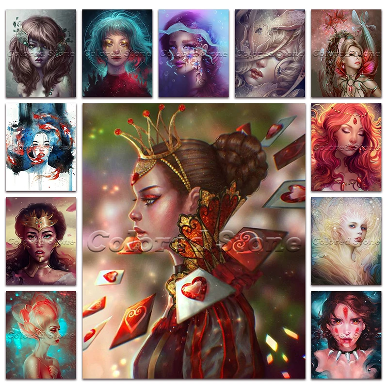 Полностью квадратная Алмазная вышивка красочная девушка леди короле...