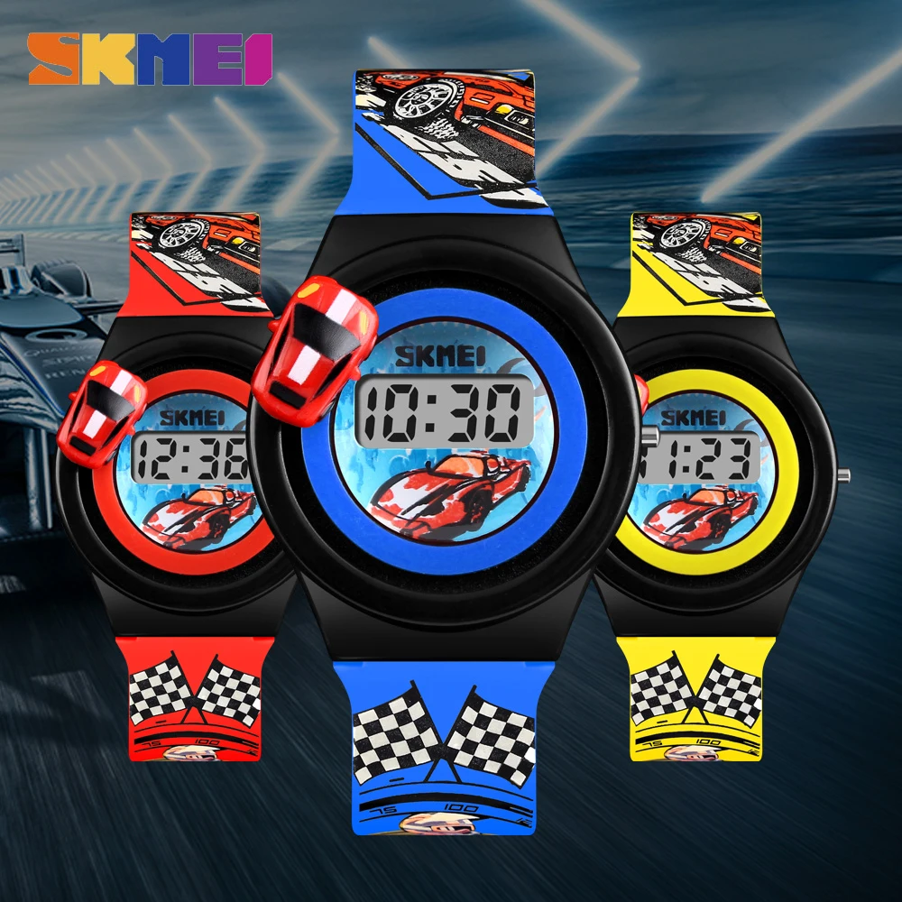 Часы детские цифровые с мультяшным автомобилем, модные электронные детские часы, креативные Мультяшные студенческие часы для мальчиков и детей