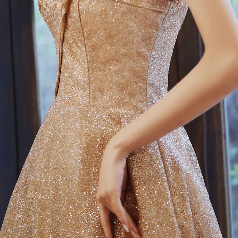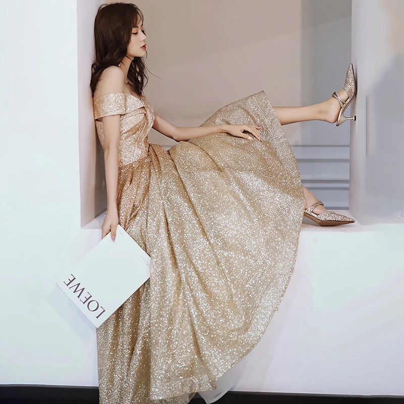 Новое золотистое вечернее платье с вырезом лодочкой, ТРАПЕЦИЕВИДНОЕ простое платье до пола с открытыми плечами Bing, большие размеры, индивидуальное женское официальное платье A141