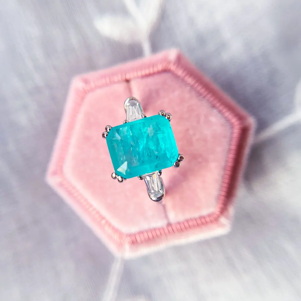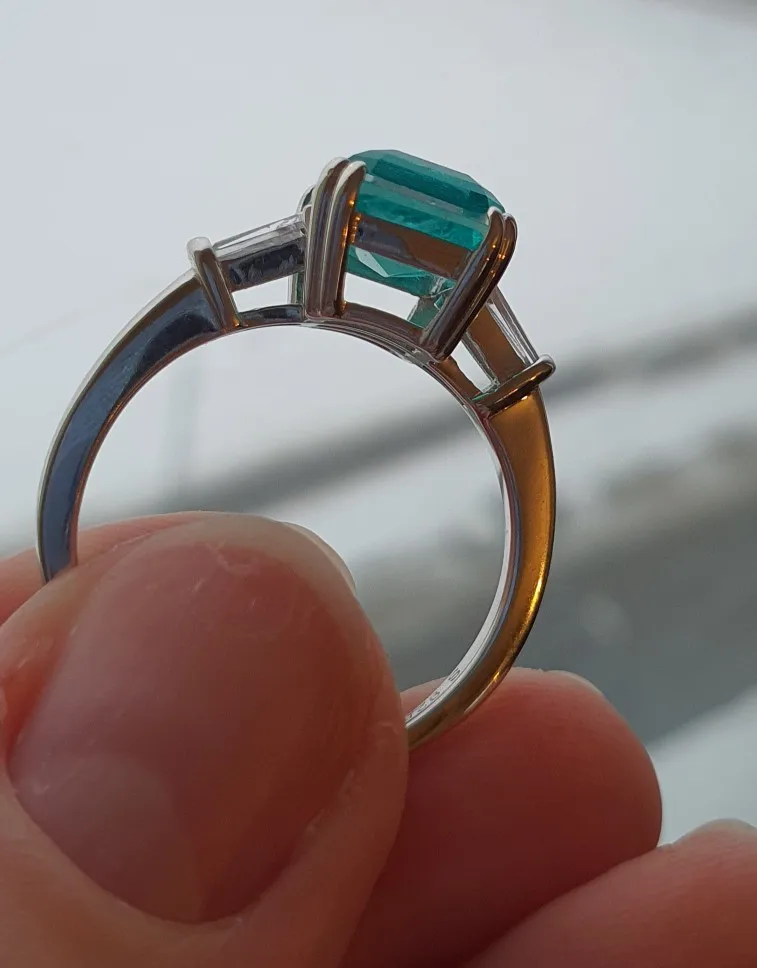 За свою цену норм. Но в целом выглядит как битая стекляшка, не в восторге. По описанию продавца это даже не лабараторный турмалин параиба, а кубический цирконий, фианит. По поводу большого камня не уверена, все же, что это фианит (хотя их красят и в такие цвета), могли напутать в описании, но боковые прозрачные камушки точно фианиты. Настоящим природным камнем за такие деньги это быть просто не может, реальный параиба адски дорогой. От контакта с металлом начала через некоторое время слегка зудеть кожа, возможно это не серебро, я аллергик. Быстро отправили, сравнительно быстро доехало в СПб.