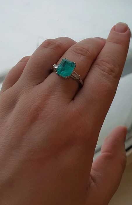 Непонятный цвет - не зеленый и не аквамариновый , камень крупный . Видно что дешевое кольцо. С пролавцом не общались. Доставка 17 дней