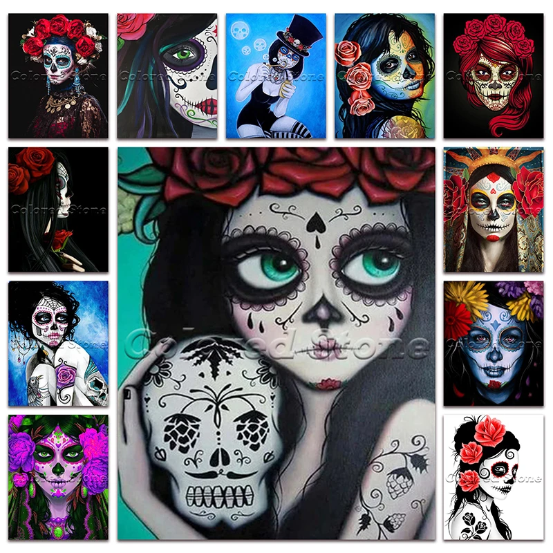 Полностью Квадратный бриллиант, 5D Вышивка крестиком красивая красота леди цветок сексуальный Череп 3D сделай сам круглый рисунок мозаика 560