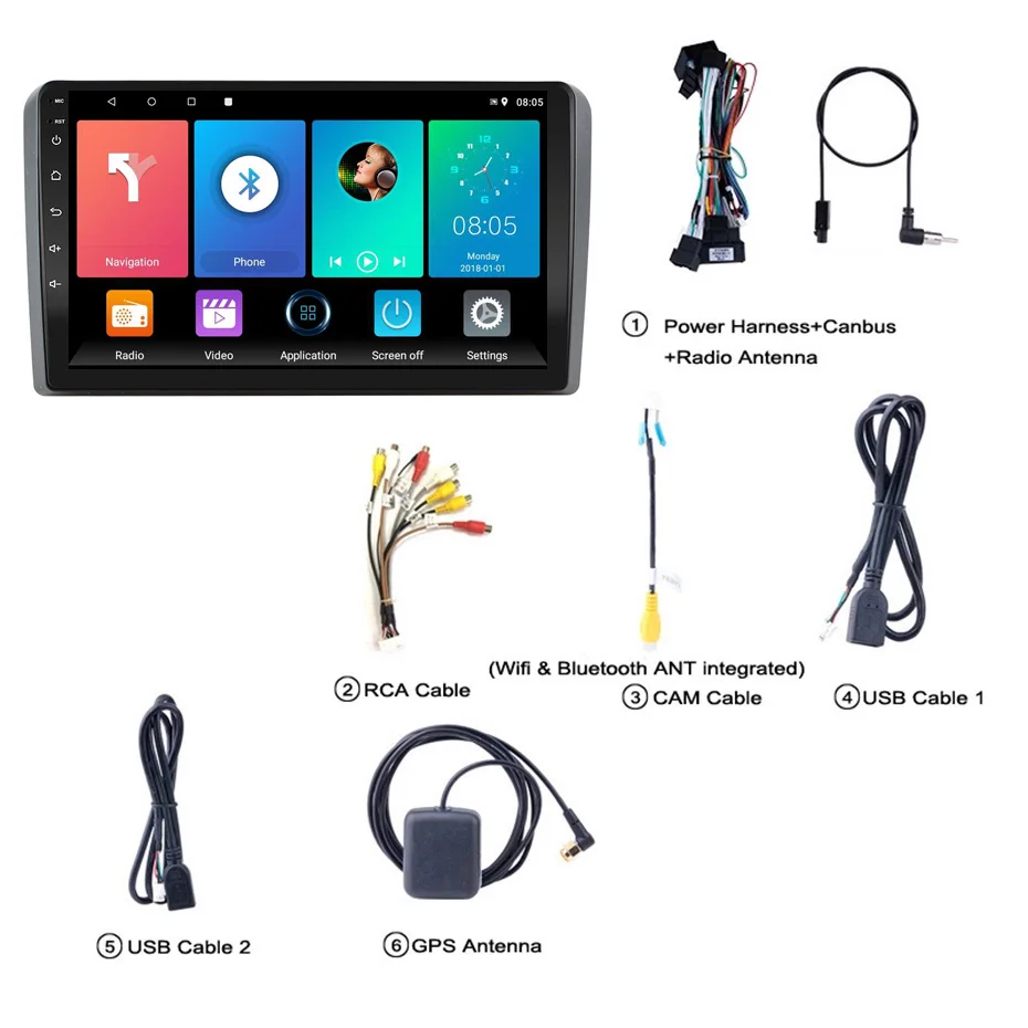 2 Din Android 8,1 Автомобильный GPS Стерео Радио мультимедийный плеер для Audi A3 2003-2012 S3 2006-2012 RS3 Sportback 2011 BT WIFI