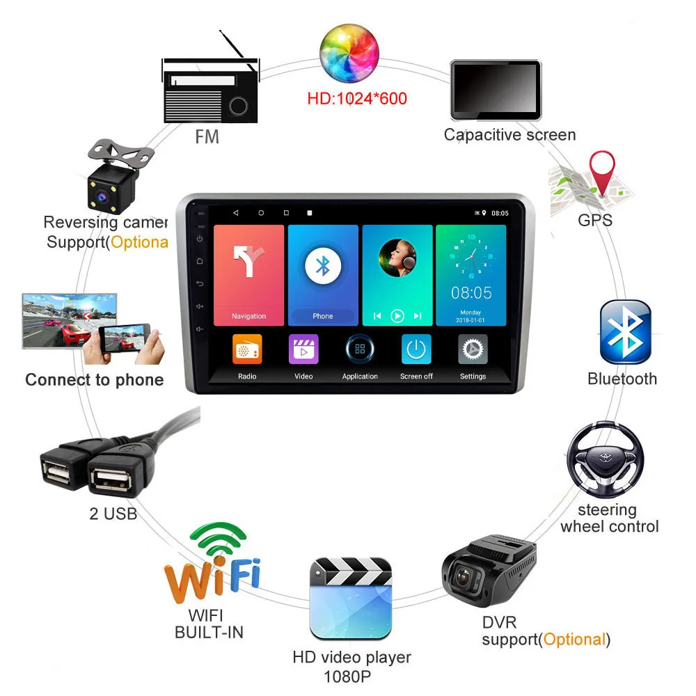 2 Din Android Carplay Автомобильный GPS Стерео Радио мультимедийный плеер для Audi A3 2003-2012 S3 2006-2012 RS3 Sportback 2011 BT WIFI