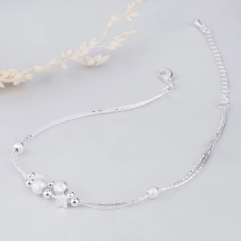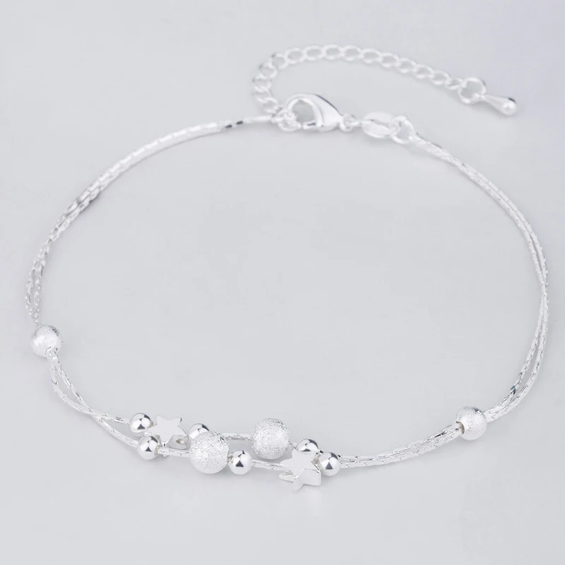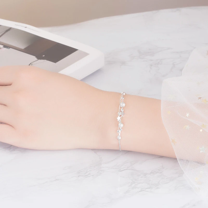 Простой двухслойный матовый браслет со звездами и бусинами изысканный женский свадебный браслет с шармами серебряного цвета модная Подарочная бижутерия для девушек