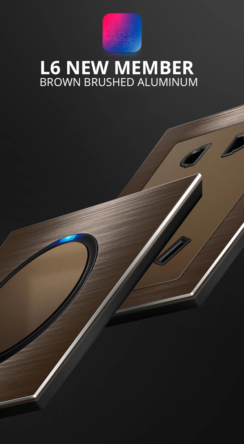 Wallpad L6 двойная французская настенная розетка электрическая розетка коричневая матовая алюминиевая панель 146*86 мм