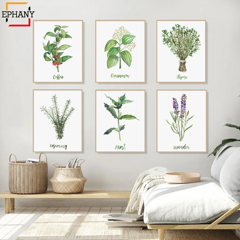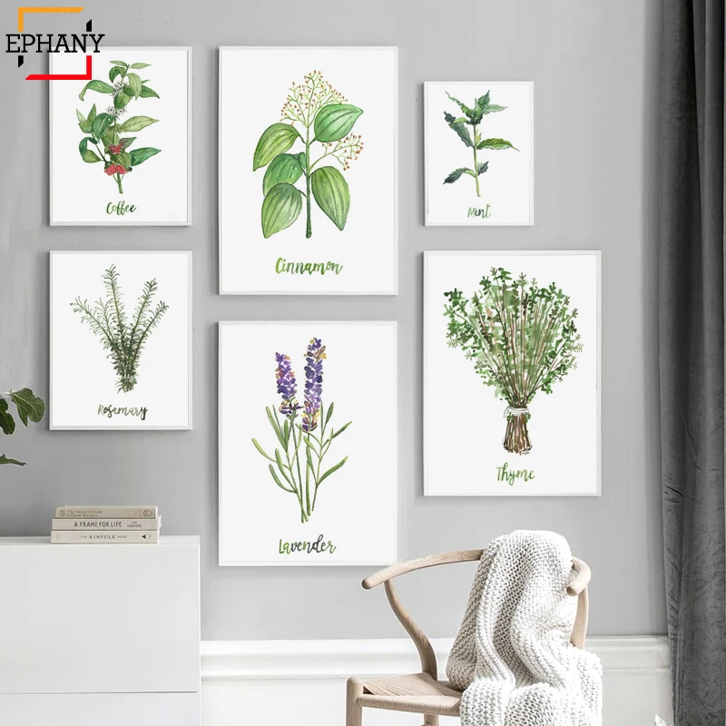 Акварельная живопись кофейное растение Лаванда трава чабреца принт современное настенное искусство новоселье подарок кухня Декор ботанические плакаты