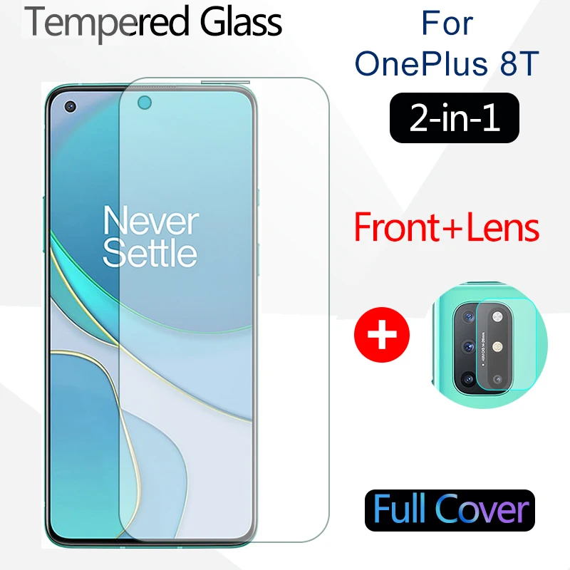 2-в-1 передняя + Объектив Закаленное стекло для OnePlus 8 T защита экрана Защитная пленка на переднюю панель для One Plus 8 T 9H полное покрытие